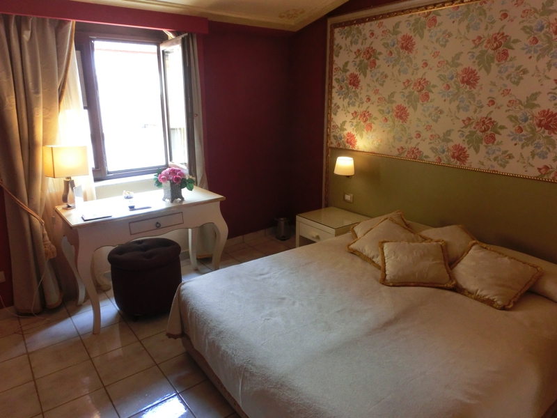 ではホテルに戻りますか。せっかくなので、旧市街のまだ通っていない道を行こう。古い街並みが続いているが、花が飾ってあったり名産の陶器が並べてあったり、きれいな街だな。ぶらぶら歩いていると旧市街の門までやってきたぞ。この前の道がさっき断念した一歩通行の入り口だが、歩いている今見てもここを車でいくのはちょっと厳しい。途中で曲がらないとならないし・・さて、ホテルに到着。あとは晩ごはんまで部屋でのんびりだが、やっぱり晩ごはんに港までいくのはやめよう。ホテルのすぐ横にあるレストランも良さそうなので、ここにしよう。