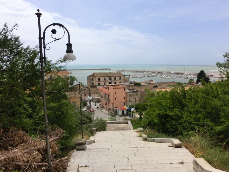 少し休憩して、街歩きへと行きますか。とにかくお腹が減ったしね。ホテルをでてすぐにレストランがあったが、さすがにもうちょっと歩いてみよう。さっき一方通行をバックで入ってきたところまでやってきた。この辺りから、旧市街の中心に向けて歩いていく。しばらく行くと海が見えてきたぞ。広場に到着するとここはテラス状になっていて、海が広く見渡せる。気持ちがいいな。ここから海側に降りていってもいいが、まだ旧市街への道は続いていくので先へ進もう。少し行くと、ドゥオモがある。そんなに大きくないが、歴史はありそうだ。