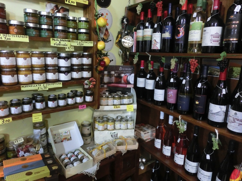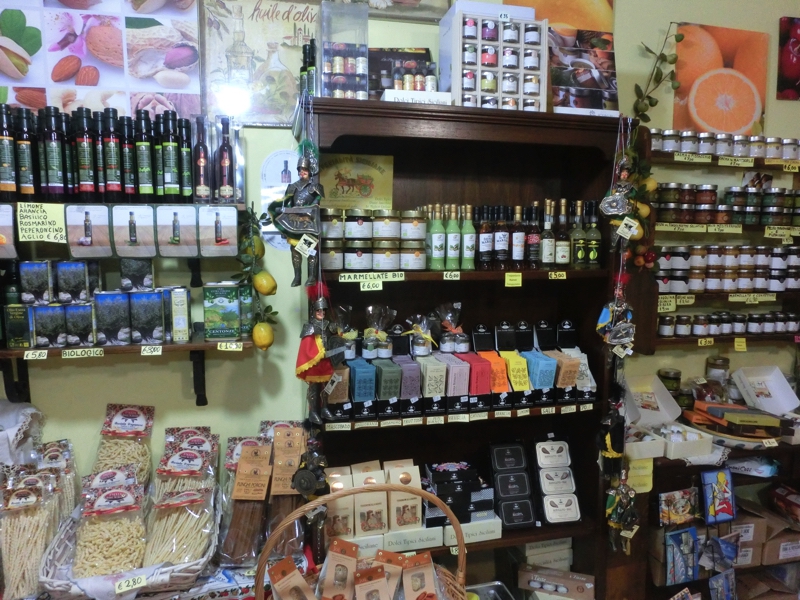 メインストリート沿いには、こじんまりとしたお店が幾つかある。食材やお菓子などのお土産がありそうなお店を見てみる。最初に見つけたお店には瓶詰めの食材がいろいろとあり、ジャムやパスタソース、リキュールなどからピスタチオのペーストのセットをゲット(13.5)。おいしいといいな。続いてはもう少し大きめのお土産やさんを見つけた。こちらはチョコなどのお菓子系もいろいろあり、どれもおいしそうだ。ここでもやっぱりピスタチオのペーストを買おう。いろいろと味見をさせてくれるし、お店の人が次から次へと話しかけてくれるフレンドリーな感じだが、そんなにたくさんは買えないからね。ということで、自分用も含め、ピスタチオやアーモンドのペーストをゲット(52)。いい買い物ができました。