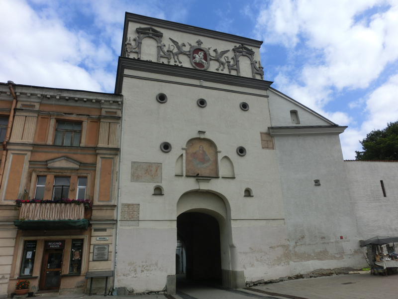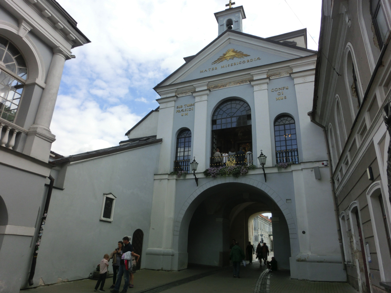 市場を出てしばらく歩くと、夜明けの門に到着。ここは旧市街の入り口となる門の一つで、16世紀初頭に作られたとのこと。門の上には礼拝堂が立てられており、帰り道にはちょうどお祈りしている人が見えました。門をくぐり、旧市街へ入ると目の前には中世ヨーロッパの雰囲気を持つ街並みが続いている。いい感じだなあ。