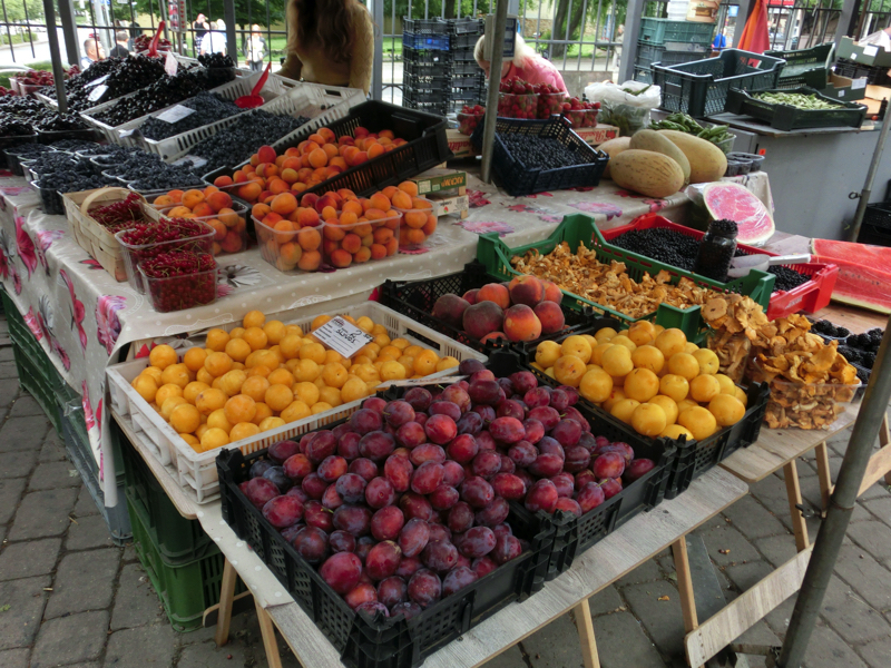 ホテルを出て旧市街に向けて歩いていくと、なにやら駅舎のような建物がありこれがハレス市場。市場となると入ってみないとね。中に入るとそこは肉や野菜などの売り場が整然とならんだきれいな市場。どこからか、いい匂いも感じることができる。入り口近くにいい感じのパン屋さんがあり、ここで見かけたのがキビナイ。いわゆるミートパイだが、試しに一つ食べてみよう。6種類くらいあるが、何が入っているのか・・聞いてみると、チキンやポーク、ラム、ホウレンソウやトマトなどがあり、ラムだと危ないところでした。無難なところでチキンにしましょうか(1.5)。チキンのひき肉が入ったパイのようで、素朴な味わいがおいしい。まずは小腹を満たしたころで、市場内を散策。この時期はイチゴやブルーベリー、チェリーなどがたっぷりと並んでいてきれいだな。自家製ピクルスなどもあり、楽しかったです。
