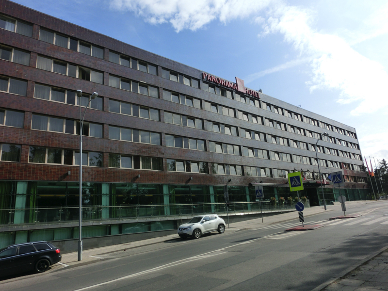ホテルの最上階に行くと、エレベーターを降りたところからヴィリニュス旧市街が一望できる。ホテルの名前がパノラマ、まさにその通りの景色だ。天気もいいし気持ちがいいが、ど真ん中にクレーンが。うーん、景色的にはなんとかならないものか。なんともならないな。さあ、今日はこの後バスでカウナスへ移動する。荷物をまとめましょう。