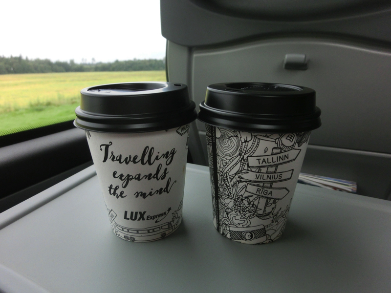 無事にバルト三国の最後、エストニア共和国に入国。Luxバスはロシアやベラルーシにも便があるが、この2か国とEU間の移動の際はパスポートチェックがちゃんとあるようです。機会があればいずれ。途中駅のParnuというところに着いたが、降りる人がさっと降りただけで特に休憩はなし。やっぱりそうか。再度走り出し、幹線道路に入ったころにバスのサービスであるコーヒータイムとしましょうか。こうした旅も、のんびりといいものです。