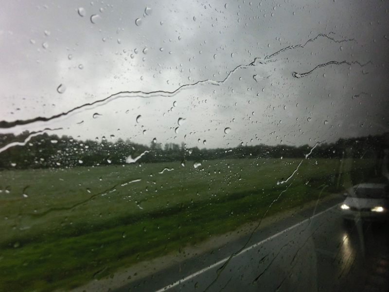 しばらく走ると、急に大雨となった。雷も鳴っているし、なかなかの豪雨。バスの移動中に、しっかり降ってくれればいいね。大雨エリア抜け、晴れ間が戻ってきたかな。そしてバスは定刻を少し過ぎたころ、13時半過ぎにタリンのバスターミナルに到着。