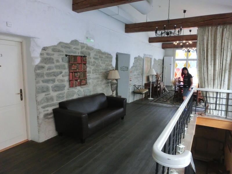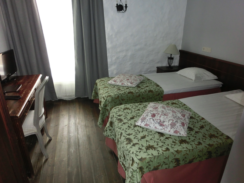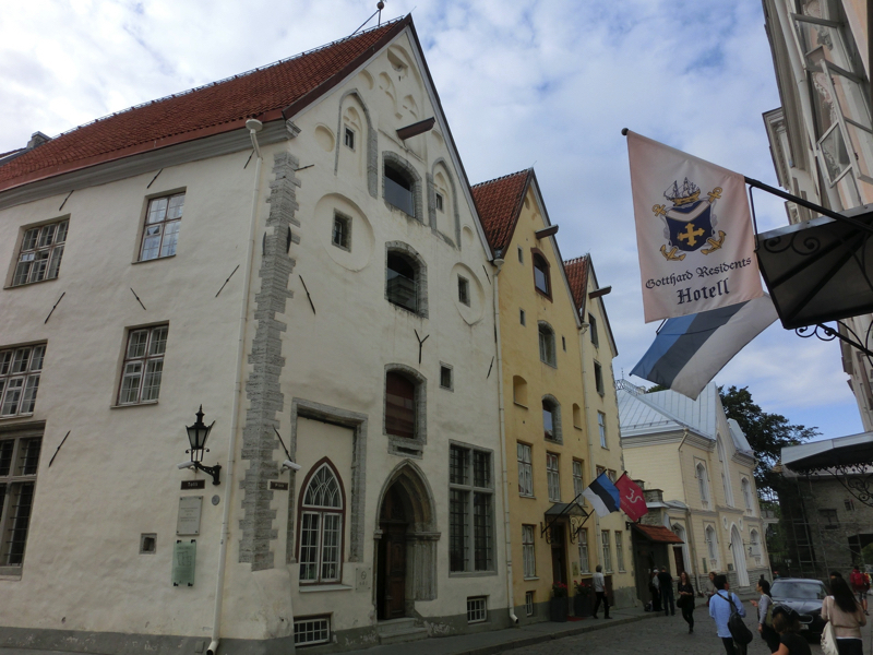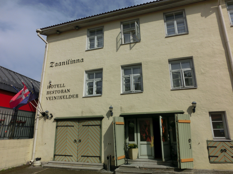 ここは新しいきれいな建物だが、少し郊外にあるのでトラムに乗る。バスターミナルから少し歩いたところにトラムの駅があり、旧市街行の2番線に乗る。運転手さんから直接チケットを買い(@2)、外の景色を見ていると目印のViruホテルを発見。そこを過ぎて最初の駅で降りる。ここがちょうど旧市街の入り口近くなので、石畳の道を少し歩くと今日のホテル、Tallininaに到着。お疲れ様でした。こじんまりとしたかわいい感じのホテルだ(99.45)。