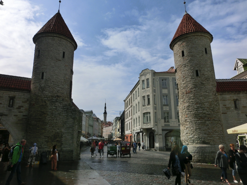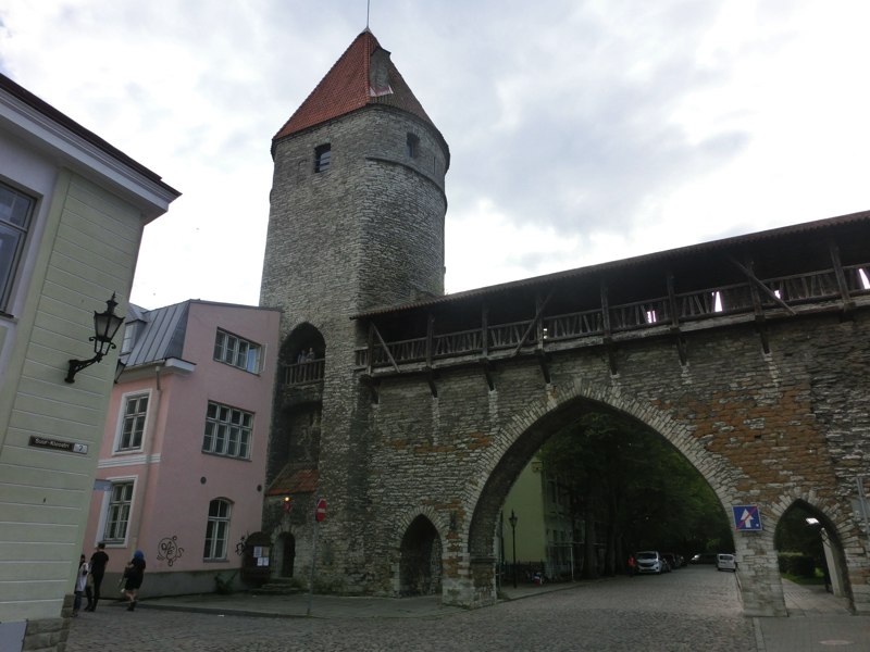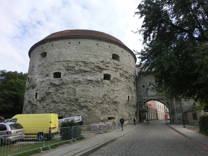 外に出ると、青空が雲間から覗いている。では街歩きしましょう。古い街並みや城壁を写真に収めながら歩き、三人兄弟と呼ばれる住宅の集合体に到着。同じようなのがリガにもあったよね。これが厳格な表情ととらえられているようです。そのすぐ先にあるのが聖オレフ教会、こちらは13世紀に建立された高さ124メートルの教会、この塔には展望台があるのだが、どうも現在は全体的に修復中のようで、入れそうにない。なので先へと進む。粉ひき小屋を過ぎ一旦旧市街からはでる。海や港が見え、船が泊っているがあれはヘルシンキ行かな。再度旧市街に入るが、その門の脇にあるのがふとっちょマルガレータと呼ばれる砲門跡、今ではエストニア開運博物館になっている。
