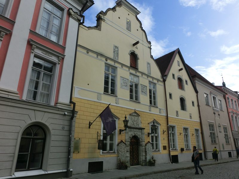 このすぐそばにあるのが三人姉妹と呼ばれる住宅の集合体。女性的な雰囲気を持っているからということだが、さっきの三人兄弟よりは優雅な感じがしなくもない。現在三人姉妹はホテルになっているようです。その先にはブラックヘッドの会館がありこれは15世紀のルネサンス形式とのこと。リガにもあったよね。この通りは他にも絵になる建物が多くあり、写真をたくさん撮ってしまいます。