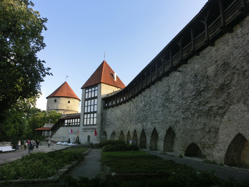 その横にある庭園に入ると、高い塔が見える。これは「のっぽのヘルマン」と呼ばれる塔で、歴代の支配者の旗が掲げられてきた。ということで、今はエストニア国旗がはためいています。庭園を出て、坂を下りると城壁があり、四角い塔は乙女の塔と呼ばれるネイツィトルン。このあたりから下町に至るエリアがデンマーク王の庭と呼ばれる場所で、細い坂道が山手と下町を結んでいる。その坂道を下りていくと聖ニコラス聖堂前に、そして賑やかな街なかへと戻ってきたぞ。