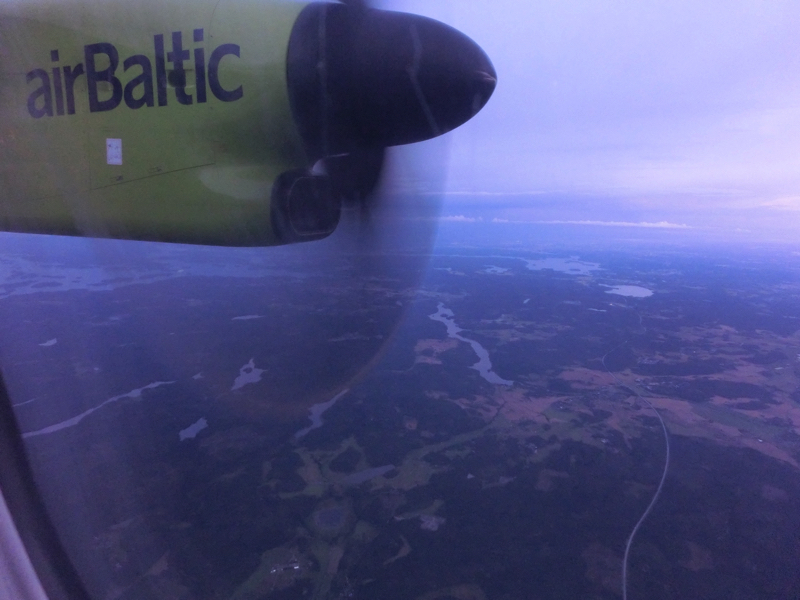 よかった。席に着き、ほっと一息。無事に離陸すると、眼下に広がるエストニアの大地、いろいろと面白かったです。機内サービスが始まったがどうやら基本有料のようだ。いつもなら特に何も頼まないが、今日はもうこの時間なのでおそらく晩ごはんには行けない。なので手持ちのナッツを食べるため、水だけいただきましょうか(2.5)。フライト時間も短いしね、と思ったら隣の列のおじさんはウォッカの小瓶を3本買っているし、その向こうのおじさんは赤ワインの小さいボトルを2本買ってるし、どっちもしっかり飲んでるし、どんだけ飲むんだよ。