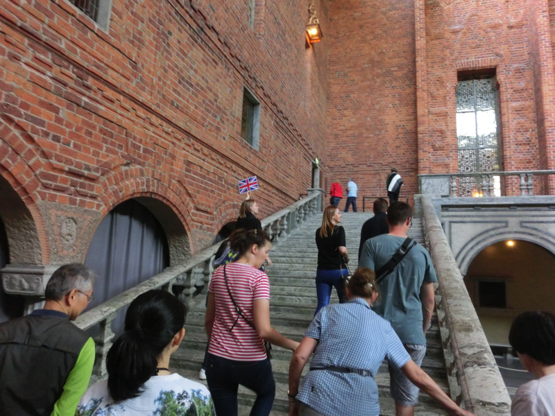 市庁舎の見学ツアーというと、これはノーベル賞の授賞式に関する見学ということ。まずは大広間、ここは受賞者を祝うディナーが振舞われる場所。