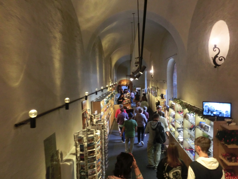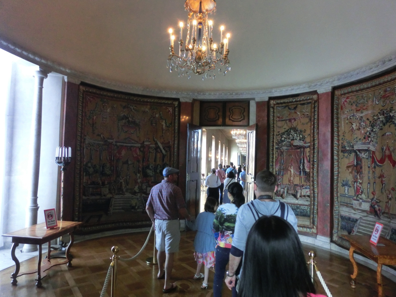 その先には王子のギャラリー。壁にあるたくさんの絵は、窓からも見えているメーラレン湖をエウシェン王子が描いたもの。そしてその奥にある部屋が、黄金の間。ここはノーベル賞の授賞式の際に、ダンスパーティが行われる場所。いまここにはいろんな国からの観光客がいるが、毎年秋には世界が注目する華やかな場所になるということですね。この部屋の前からはさっきいたブルーホールが見下ろせる。年に一度、世界が注目する場所を見学できて楽しかったです。
