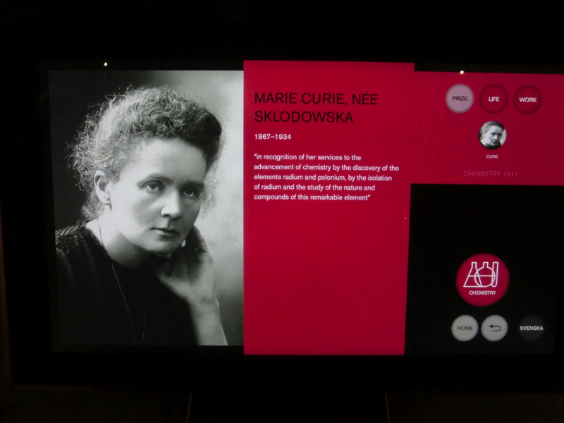 ここ最近の受賞者や、日本人最初の湯川秀樹、文学賞の川端康成、平和賞の佐藤栄作など各先生の錚々たる経歴を見ることができた。もっと過去も見てみよう。最初の受賞者は1901年のレントゲンなどで、1903年物理学賞にはキュリー夫妻。夫人の方は1911年にも受賞しており、このときは化学賞。そんなことも分かって面白い。1921年のアインシュタイン、舌を出した写真が有名だがここにある写真はさすがにきっちりしている。そうか、こういう写真もあるんだね。