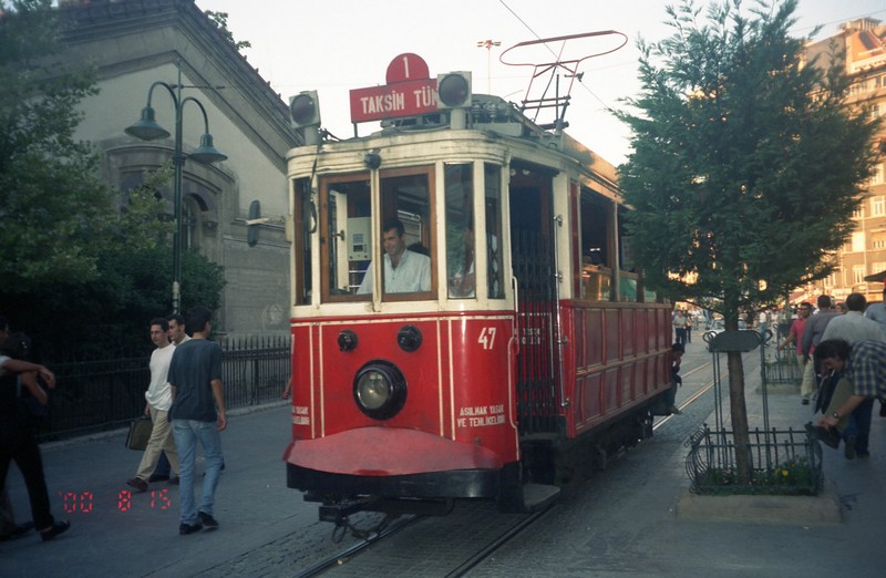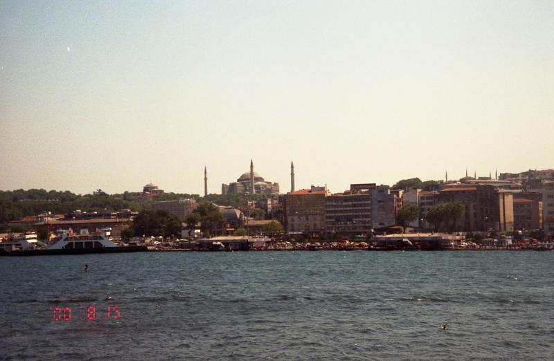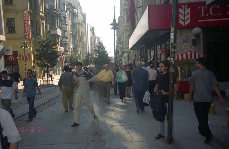 スーパーを出てタクシム広場までは後少し。だんだん通りがにぎやかになってきたぞ。ようやく到着。ずいぶんと歩きました。とにかく休憩。すぐ近くにあったバーガーキングでオレンジジュースを飲む(@80万TL)。ふー、疲れたっと。でも今日はまだまだ行くところがあるので、へこたれてはいられない。イスティクラル通りでお土産を探そうとしたが、ちょうど日差しが通りにまともに差し込んでおり、とてもまぶしくてまわりをゆっくりと見れる状態じゃない。なのでオルタキョイに行きましょう。タクシム広場のバス停でオルタキョイ行きのバスを教えてもらい、乗りこむ。20分ほどのバスの旅だ(@30万TL)。