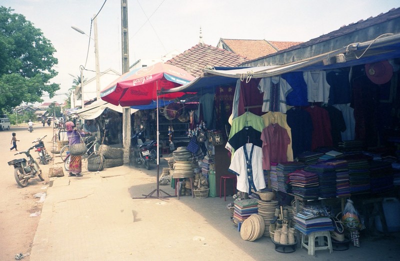朝8時起床。シャワーに入ったあと、朝ごはんへ。あと15分くらいで終わってしまうので、あまり食べている人はいない。ここはバイキングではなく、一通り持ってきてくれる。パンと卵、ジュースとコーヒー。ジュースは懐かしい感じのつぶつぶジュースだ。ジャムはあまりおいしくなかった。さて、今日は買い物をしよう。ホテルのすぐ近くにマーケットがあるので好都合だ。アンコールワットやバイヨンを模した置物やきれいな織物、籐細工、かばんやTシャツなど、いろいろなものが売っている。品定めをしながら歩き、マーケットの内側へと入ると、果物や野菜など、食料品を売っているところに来た。魚もたくさん並んでいる。トレンサップ湖で今朝取れた魚であろう。その奥には貴金属のマーケットがある。ま、ここは興味無いけど。しばらくマーケットの周りをうろうろし、ホテルへと戻りながら再度品定め。軒先にぶら下がるかばんなどを見ながら歩く。きれいな織物を買いたい。あるお店に入ると、いろんな織物がある。お店のひとがいろいろと広げて見せてくれる。思ったよりしっかりとした、きれいな生地だ。同じデザインでも色違いがたくさんあり、同じように見える色でも微妙に違う。値段を聞くと一枚14ドルという。ちょっと高くないかい?Tシャツなどもいろいろと見て、生地は赤・青・緑の3種類、それにアンコールワットTシャツを加えて計30ドル。うーん、もうちょっと値切れたかなあ。でもお店のおねえちゃんがかわいかったからいいか。