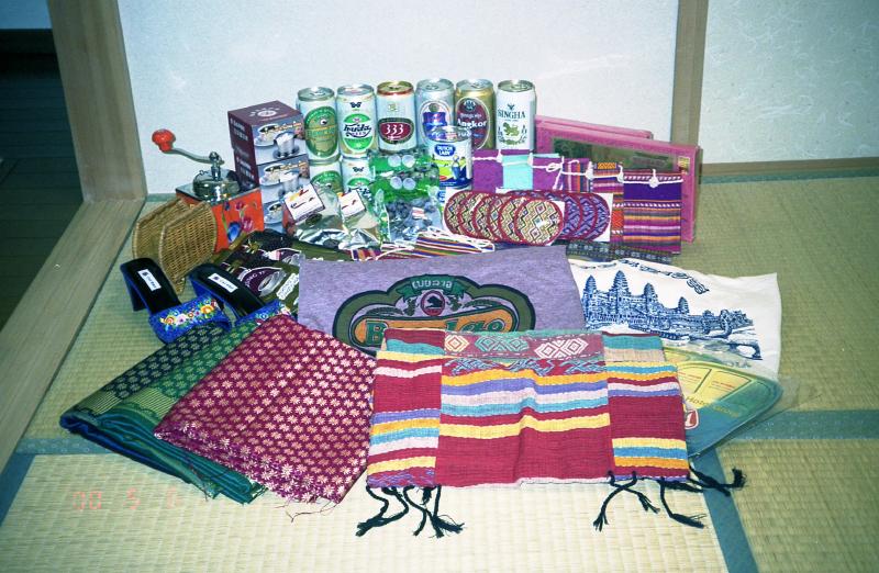 さて、もう18時だ。空港に戻りましょう。近くにいたトゥクトゥクのおっちゃんに空港まで行ってもらうことに。25,000キップでよろしく〜ちょっと時間と情報が無さ過ぎたかな。まあでもとにかくごはんが食べられて良かった。空港までの道のり、たくさんのバイクや自転車を抜かしていく。10分ほどで到着。空港の敷地に入ってすぐ、物置のような建物があり、良く見るとINTERNATIONAL AIRPORTの文字。98年以前はこの建物が国際線のビルだったのだ。それに比べるとずいぶんと立派になったものだ。クーラーも効いているし。でも国際線の表示を見ると、今日は4便しか飛んでいない。今のところはもったいないくらいの空港だ。これから増えていくのだろう。さて、預けていた荷物を受け取り、チェックイン。残ったキップをすべてドルに両替。ホーチミンに続き、今度も本当にぎりぎりのところで10ドルゲット。ちょうど出国税一人分だ。あと一人分はバーツが残っているので400バーツを払おうと1000バーツ払ったら「あなたはラッキー、600バーツのおつりがあったわ!」おいおい、もう無いのかよー。それぐらい用意しとけよー。ほかの人はどうするんだよー。出発ロビーへ。小さいが免税店もある。ここでノートとコースターをゲットした。街の物価に比べたらばか高いがやむおえまい。飛行機の搭乗が始まった。ラオス航空のはずだが、機体には「PBAir」。なんでしょうこれは?共同運行なのかな。新しい飛行機のようだ。さあ、飛行機は離陸を始めた。バンコクまでは1時間20分。外は真っ暗。箱に入った機内食が運ばれてきたぞ。箱を開けるとハンバーガーとポテト。たいしてうまくは無いが、久しぶりのハンバーガーで妙に食が進む。ごちそうさまでした。食後少しうとうとしていると、そろそろ着陸。高速道路にたくさんの車が見える。やっぱりバンコクは大都会だ。飛行機は無事、着陸した。今日はもう寝るだけ、明日は朝帰るだけ。でも一旦入国してしまうとまた出国税がかかる。このまま空港の中にいようか、それとも夜行便に空きがあれば乗って帰ってしまうか。いろいろ考え、空港の人に聞いて見たけれどもうまく行かない。やむ終えませんね、おとなしく入国してホテルでゆっくり寝ますか。ホテルは初日と同じ、ASIA AIRPORT HOTEL。シャトルバスでホテルに到着。ビールを買って部屋に。さて、乾杯!ふー、ほっと一息。お疲れ様でした。