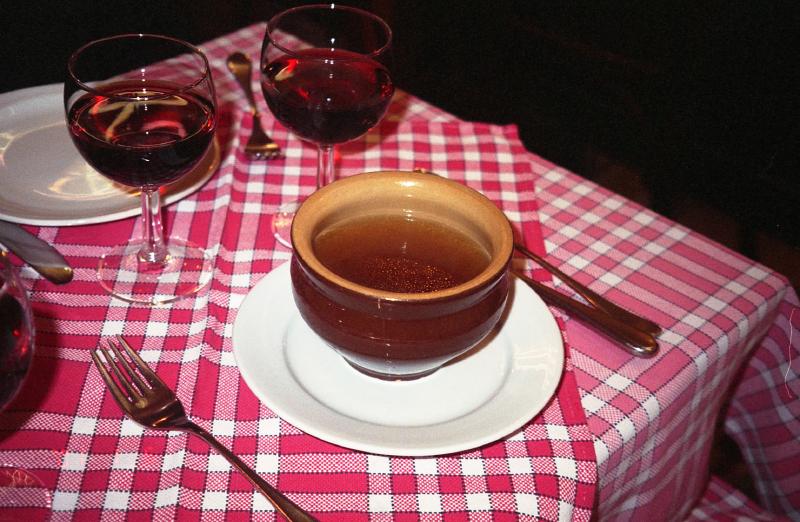 5時半起床、チェックアウトをし、7時過ぎにホテルを出発。真っ暗だ。星が輝いており、まるで真夜中のようだ。サン・マロの街を後にし、駅に続く真っすぐな道を歩く。だれも歩いていない。7時40分頃、駅に到着したのはいいが、朝ごはんはどうしようか。駅に何か売っているかと思ったが、何も無いので野生の勘だより。何と、歩いてくるおじさんが持っていた紙袋に敏感に反応し、パンやさん発見。素晴らしい。クロワッサンなど、3種類のパンをゲット。駅に戻り、電車に乗り込み朝ごはん。そこそこ人は乗っているようだ。8時過ぎ、電車はレンヌに向けて出発した。1時間弱の旅だが朝が早かったのと真っ暗で外の景色が見えないのとであっと言う間に眠りに落ち、あっと言う間にレンヌに到着してしまった。ここでパリ行きのTGVに乗り換える。時間は10分ほどしか無いので、急いでホームに向かう。すぐにTGVはやって来たのはいいが、行きと同じ11号車で一番前の車両なので、随分歩かなければならない。ようやく乗り込み、ほっと一息。TGVはパリに向けて出発した。もう外は明るくなっているのだが、やっぱり眠たい。ほとんどパリに着くまで、みんな眠りこける。Kさんは探検もタバコもコーヒーも楽しみ損ねたようだ。11時10分、パリ・モンパルナス駅到着。今日はいろいろと買い物をしたいのだが、一日この荷物を背負っている訳には行かない。まずはユーロスターの出発する北駅に行き、荷物をコインロッカーに預ける。身軽になったぞ。まずは腹ごしらえと言うことで、行きたいと思っていたポトフやさんへ。マドレーヌ寺院のすぐ近くにあるそのレストランは、なかなかいい雰囲気だ。もちろんポトフを注文。ワインはハウスワインの赤、ガメイだ。この軽やかな飲み口がポトフに合うのであろう。まずはスープ。野菜や牛肉のエキスがたっぷりと染み出したスープで、とてもおいしい。パンとともに食べてもまたおいしい。朝ごはんだったらこれだけでも十分に満足だろう。続いてメイン、ポトフ登場。お皿一杯に盛られた野菜と牛肉。白菜はたっぷりとスープを吸っていておいしい。ジャガイモやニンジンは素材の味とスープがマッチしてこれもおいしい。牛肉はホロホロに柔らかく、これもまたおいしい。そして牛骨、中の髄がまたとろけるようで、パンにつけて食べるととてもおいしい。おいしいづくしで完食しました。超満足です。ふと周りをみると半分以上は日本人。場所が便利なこともあるが、日本人はこういう料理が好きなんだろう。