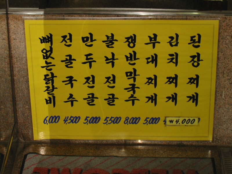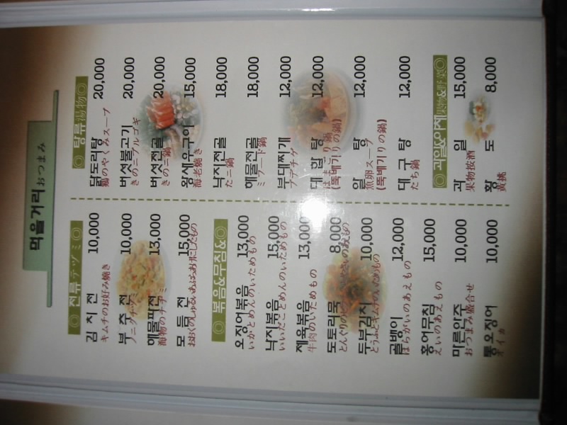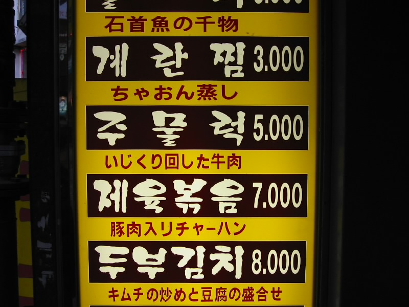 香港や台湾もそうだが、街中の看板やメニューをよく見ると、不思議な日本語が書かれている。「いじくり回した牛肉」って・・・食べたくねえ。ンとソ、シとツなどはご愛嬌かな。それにしても、これだけ日本人もいるのだから誰かにチェックしてもらえばいいのに。 |