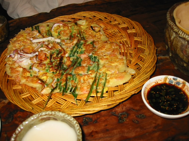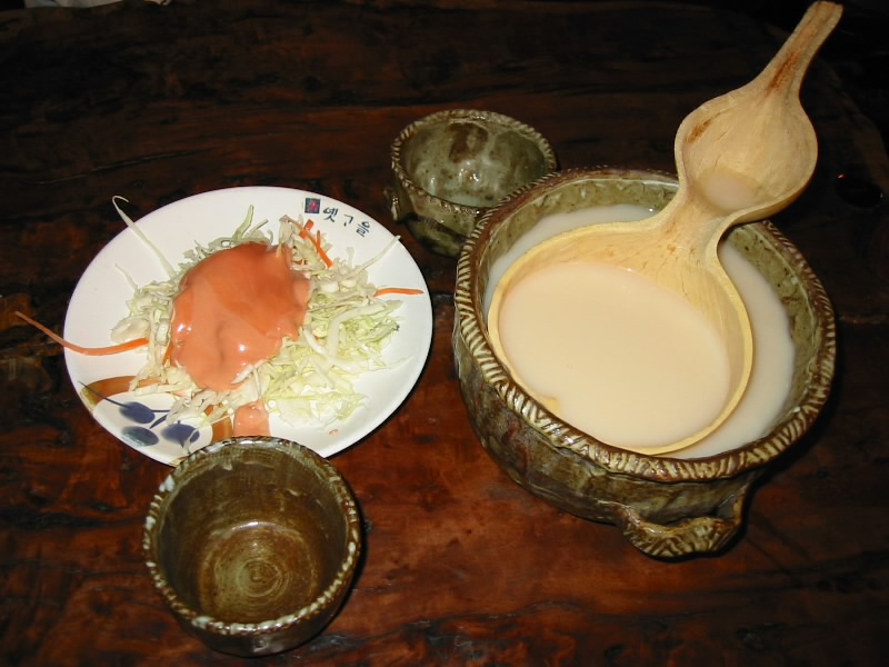 鍋で満腹にはなったが、せっかっくなのでもう少し飲みましょう。近くにある民族酒場へ。要するに居酒屋だ。ドンドン酒は米の香りと甘みの感じられる飲みやすいお酒。ちょっと危険かな・・・海鮮チヂミはふっくらとした生地にニラ、イカがいい感じ。 |