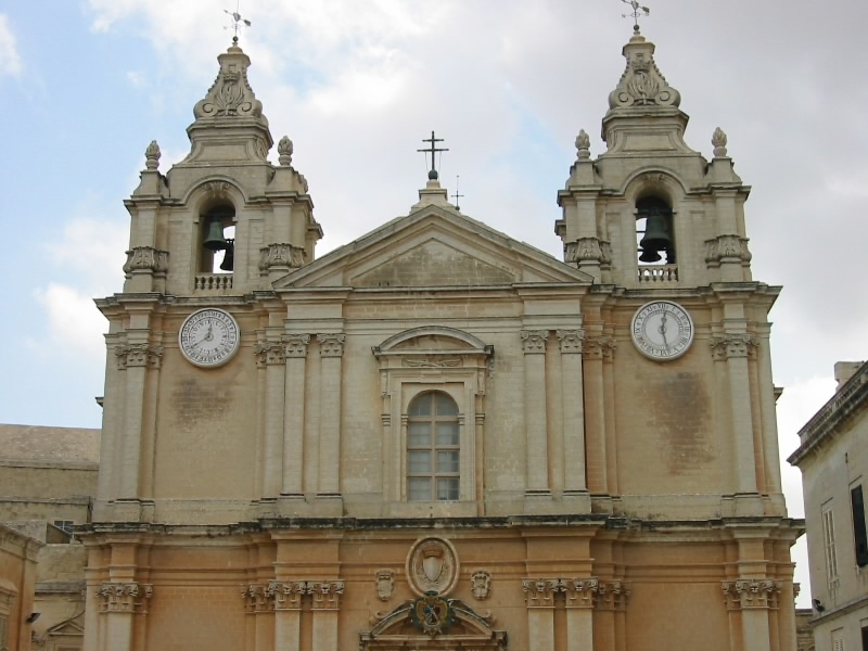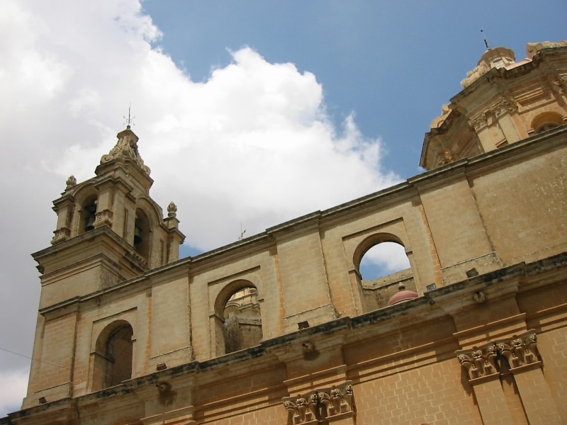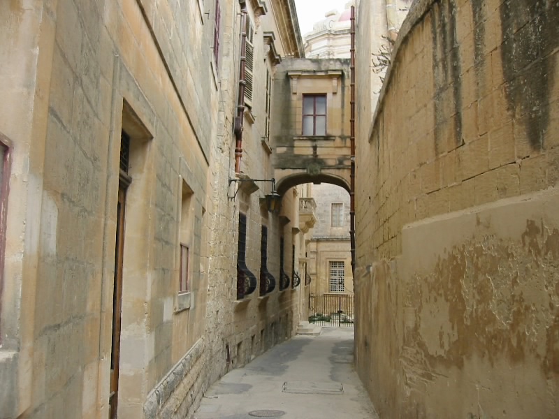 8時半起床。随分とよく寝た気がする。シャワーを浴び、さっぱりしたところで朝ごはん。昨日のレストランから持ち帰ったパンがおいしい。さあて、今日はマルタの古都、イムディーナへ行こう。ホテルを出てバスターミナルへ。ちょうどいい具合に、81番のバスがそこにいた。たくさんの人が乗り込んでおり、そのほとんどが観光客のようだ。みんな目的は同じ、イムディーナであろう。すぐにバスは出発した。すぐに街を出て田園風景の中を走る。20分くらい経っただろうか、遠くの高台に城壁に囲まれた要塞のような街が見えて来た。あそこかな?その街につながる道を上り切ったところでバスは停まり、たくさんの人が降りようとしている。どうやらイムディーナのようだ。バスを降りてしばらく歩くと駐車場のようなところがあり、そのすぐ近くに城壁の中に入る正門があった。中に入るとそこには古い街並がひろがっていた。静かで、なかなかいい感じの街だ。こういう街を歩くのに地図は要らない。思いつくまま細い路地を歩くのが楽しいのだ。と、突然鐘が鳴り始めた。かなり大きな音だ。時間を知らせる鐘では無さそうだが・・・音の主は大聖堂である。かなり長い間その鐘はなっていた。ここイムディーナは16世紀には首都となっていた場所で、多数の貴族の館が立ち並んでいたらしい。今はその面影はなく、「静寂の街」と呼ばれるほど静かな街だ。鐘の音以外は・・・保塁広場にやって来たぞ。ここからは遠くバレッタの街までを見渡すことができる。いい景色だ。