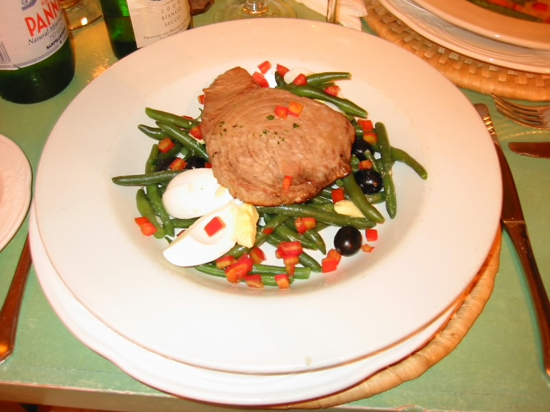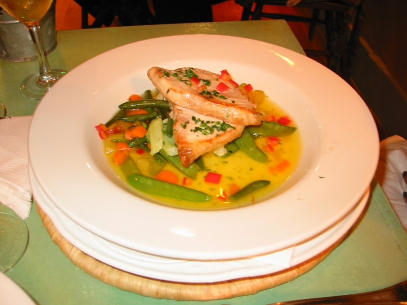 さて、晩ごはんだ。今日はホテルにあるカジュアルなレストランにしましょう。ただしカジュアルとはいえ、よれよれのTシャツに短パン、サンダルではあまりにもまずいので、せめてシャツだけでもちゃんとしたのを来て行きましょう。エレベータを降りるとすぐにレストラン。結構賑わっているようだ。メニューをチェックし中に入る。奥の席に案内され、マルタ最後のディナーはどうしましょうか。やはりワインはマルタの白ワイン。それに本日のスープとマグロのグリル、そしてカジキマグロのソテーをたのむ。まずはワイン。すっきり冷えて、おいしいワインだ。これも昨日見たMARSOVINというワイナリーのワインのようだ。なかなかいいワインを造っている。しかも安い。こんなホテルで飲んでも一本1,000円しない。日本ではまず見かけることは無いであろうマルタワイン、しっかりと味わいましょう。本日のスープ登場。セロリとリークが入ったポタージュだ。青野菜の風味が強いおいしいスープだ。これはパンとともに食べるのもおいしい。あっと言う間に平らげました。そしてメイン登場。どちらも付け合わせの野菜がしっかりとしておりおいしそうだ。まずはマグロ。柔らかく、そしてマグロ独特の風味が口いっぱいに広がる。とてもおいしい。そしてカジキマグロ。こちらも柔らかい。そしてしっかりとした風味がある。どちらもとてもおいしく量としてもちょうどいい。実はもう少し食べられそうな気もしたのだが、これまでの旅で少し胃が大きくなっているのかもしれない。これで十分、満足です。ごちそう様でした。しめて17MLちょっと、ホテルのディナーなのにやすい。大満足です。