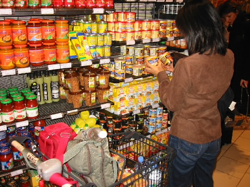 そうだ、そうしようというわけで、まずBon Marcheへと向かう。今日は日曜日だが、食品部門は開いている。でも時間が早いせいかがらがらで、店員さんも暇そうだ。こういうときに買い物はすませたい。大きなカートとともに、ぐるっと一回り。ジャム、マスタード、スープの素、塩、胡椒、その他調味料、オリーブ、チョコレート、紅茶、カップスープ、マロンペースト、オイルサーディン、フォワグラの瓶詰・・・カートがいっぱいだ。これで実に323.20E、当分の間いろいろと楽しめるぞ。お土産もほぼそろったし、満足満足。結局2時間近くかかったが、楽しかった。両手いっぱいの抱え、一旦ホテルに戻る。