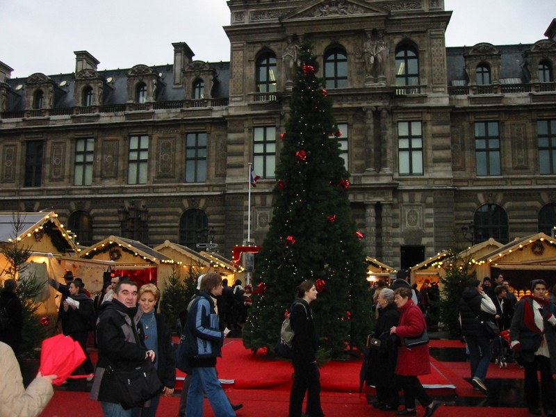 そろそろお茶でもしようか。カフェというよりも、紅茶専門のサロンドテに行きたい。メトロに乗ろうと思いリヴォリ通りへと出ると、なにやら賑やかな広場がある。何だろうと思い中に入ってみると、どうやらクリスマス市のようだ。日本人的にはピンとこないが、クリスマスにつかう飾りやろうそくなどが売られている。まあフランス人が日本の正月市で注連縄や門松、鏡餅などをみてもピンとこないだろうけどね。しばらく行くといい匂いがしてきた。まずはカヌレをゲット(1.5E)。昔ボルドーで食べたのは今一つだったが、ここのはまわりぱりっとして中がしっとりで、しかも温かい。黒砂糖の風味もいい。その隣には、大きな鍋でなにやら煮込んでいるのが見える。おいしそうなポテトなのだが、あれはちょっと多いなあ。ぐるっと回って最初に入ったあたりまで戻ってくると、そこにもおいしそうな匂いが立ちこめている。そんななかにソーセージやシュークルートなど、アルザス風の屋台がある。おいしそうなので食べましょう。昼の中華では満腹にはなっていないので、十分食べられる。たっぷりのシュークルートに2種類のソーセージ、分厚いベーコンにオニオン。付け合わせのマスタードが辛く、さらに味を引き立てている。たっぷりあるように思えたが、多いのはシュークルートなので以外にするすると食べられる。あっさり完食、ごちそうさまでした(13E)。
