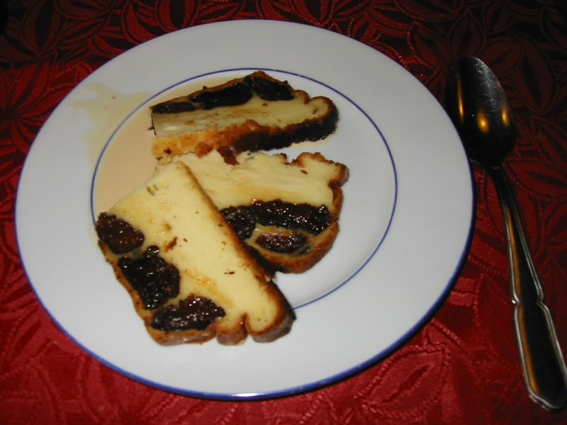 もう一軒入ってみるが、ここもオーダー終了。やばいぞ。こんな生カキを目の前にして今日はクレープか?その隣のお店に入ってみると、一瞬答えに間があったが大丈夫とのこと。危ないところだったな。さて、何にしましょうか。メニューをもらうと、12、14、18Eのセットメニューが。どれにも生カキがついているが、数が違う。では8個つき、14Eセットにしましょう。あとは良く分からないがメインを選ぶ。とにかくカキが楽しみだ。まずはワインで乾杯。お昼ということもあるので、ミュスカデのハーフにしましょう。すっきりとした酸味のおいしいワインだ。さぞカキにあうだろう。しばらくして念願の生カキ登場。No.5なので小さなサイズだが、新鮮でおいしそうだ。さて、レモンを絞り、お味は・・・うまくないわけがない。ここカンカールは遠浅の海の港町で、そこに無数のカキが育てられているのだ。今日目の前の海からあげられたものがおいしくないわけがない。付け合わせのビネガーも試してみよう。こちらも実においしい。さわやかな海の香りがいっぱいに広がる。どちらかと行うとビネガーの方が好きかな。8個あったカキが、あっという間になくなってしまった。白ワインとともに、まずカンカール一回目のカキを楽しんだぞ。その後はメイン。気持ちとしてはカキがメインなのだが、これもおいしそうだ。一つは白身魚のシードルソース。ぷりぷりの白身魚がとてもおいしい。もう一つは豚肉のフリカッセ。あまり旅先で豚肉を食べることはないのだが、これもおいしい。そういえばタクシーで来る途中、放牧されている豚がいたな。そりゃおいしいわけだ。こちらも完食し、デザートタイム。ブルターニュ名産のクイニーアマンとファーブレトンにしよう。エスプレッソとともに頂く。どちらも甘過ぎず、量も適量。久しぶりにしっかりとデザートを食べたが、なかなかおいしかった。これで45.50E、おなかいっぱい満足です。