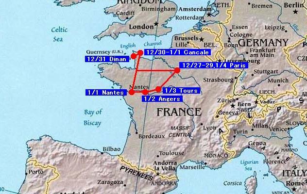 カンカールからナントへ。冬の祝日、移動手段はかなり制限される。2003年は何事ももっと確実に。。 |
