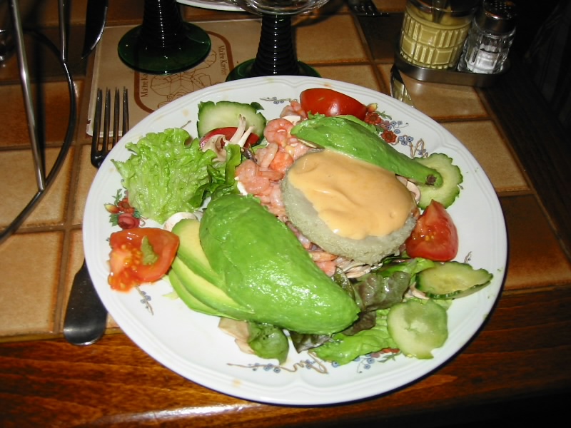 昔ながらのコンパートメント車両に乗り込み、Redonを出発。ここから40分ほど、ようやくナント駅に到着した。あとはホテルまでもうひとがんばりだ。駅から5分ほど歩き、到着したホテルは・・・18時までクローズ。なんてことだ。ユースホステルにはよくある話だが、普通のホテルでこういうことは珍しい。とはいえ18時まではあと1時間半、どうしようも ないので駅前のカフェに入る。今日はよくカフェに入る日だ。まあとにかく一息つこう。紅茶を飲みながら(4.4E)のんびり過ごしているうちに、18時を過ぎた。ホテルに行くと、明かりがついている。あいているぞ。チェックインをすませ、部屋へ入る。朝カンカールをたってから乗り継ぎを繰り返し、ようやくホテルのベッドに到着。このホテルの部屋のカギは入り口のカギにもなっており、これさえあれば閉まっていても入れるということなのだ。ふう、疲れた。少し横になろう。とはいえ寝るわけには行かない。19時ごろ、復活だ。そろそろ晩ごはん、今日はサラダが食べたいな。フランスのごはんはおいしいのだが、確かに野菜は不足する。昨日の大晦日ディナーも魚の料理に付け合わせ程度に温野菜があっただけ。日本では毎日相当の量の野菜を食べているので、この一週間ほど野菜不足のせいかちょっと体調がよくない。よし、野菜をもとめてレストラン探しだ。ホテルをでて、街の中心へと向かう。途中にお城があるのだが、夜の闇の中にそびえ立っていてちょっと不気味な感じ。明るい時にゆっくり見てみたいものだ。大通り沿いをしばらく歩くと、少し賑やかなエリアにでてきた。広場があり、レストランも何軒かある。ただ今日は元旦なので、あいていないお店も多い。そんな中、広場に面したレストランに入ることに。あいている店が少ないこともあるだろうが、かなりにぎわっている。奥の席につき、メニューをもらう。さてどうしようか。とにかく野菜が食べたいので、まずはサラダ。あとはここのところ魚介続きだったので、肉が食べたい。シュークルートのメニューが何種類かあったので、グリルソーセージとシュークルートの盛り合わせ。こうなると飲み物はビールでしょう。ふと、後ろの席を見ると大皿に大量のシュークルートとゆでたソーセージがでてきた。まさかあれじゃないよね?メニューには2人用のセットがあったので、あれは2人用だろうなと思っていると、シュークルート登場。何だこの量は・・・ソーセージはともかく、骨つきの肉の固まりまでのっている。これ一人分だよね。本当にみんなこんなに食べるのだろうか・・・サラダも少し大きめだが、まあこのくらいならいいでしょう。レタスやトマト、小エビやアボカドなど、なかなか盛りだくさんで、これはなかなかうれしい。野菜を食べ、シュークルートを食べ、そしてソーセージを食べる。ビールとともにおいしいのだが、やはり途中でおなかがいっぱい。とてもじゃないが肉の固まりには手がでません。ほかの人をみても食べ切れない人も多いようだし、もったいのない話だ。もう少し出す量を少なくしてもいいとは思うのだが、それは長年の習慣で難しいのかな・・・とにかくこれでもう満腹。ごちそうさまでした(29.40E)。