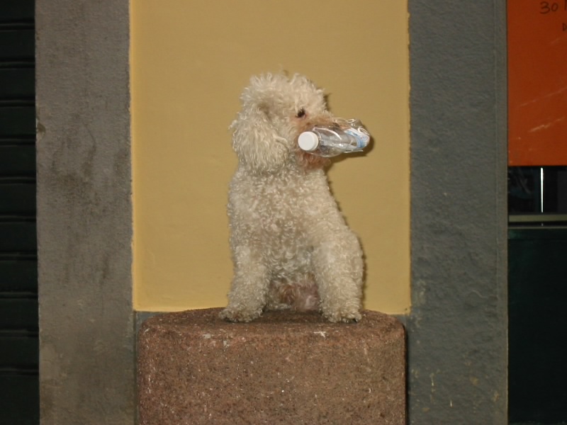 店を出るとかわいい子犬が散歩していた。思わず写真をとると、今度はポーズをつけてくれた。いやいや、子犬はかわいいな。カステロ広場に戻る途中、カフェの前にユベントス−ボローニャ、ミラン−インテルの文字が。ここでも中継をやるのだな。さて、中央駅まで戻りましょう。しかしそれにしてもみんなどこでご飯を食べるのだろう。中央駅までのあいだ、特に入ってみたいお店は見当たらなかった。中央駅に到着。駅前のバス停を見ると、確かに9番があった。しばらくすると9番のバスが来たので運転手さんに聞いてみると、確かにスタジアムまでいくという。よし、これで間違いない。