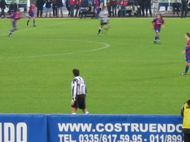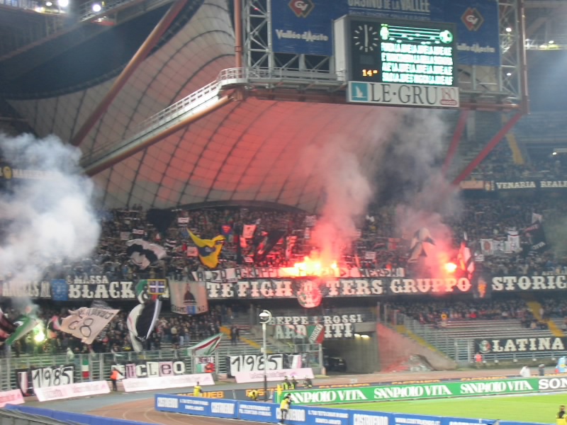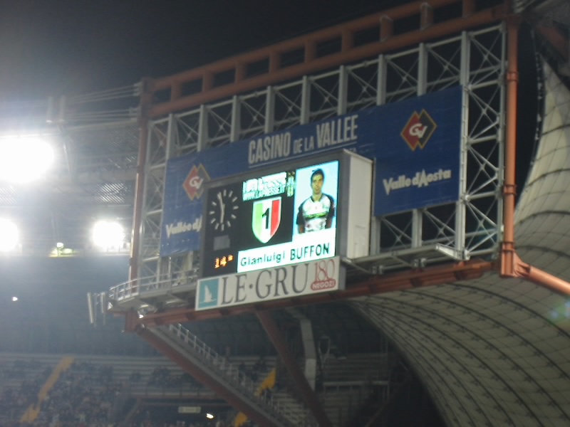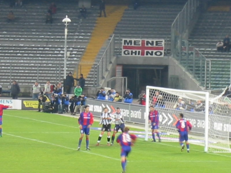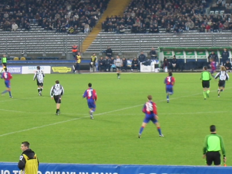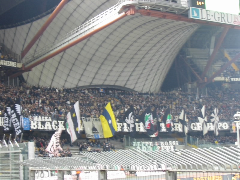 前半の45分間はお互いスローペース。ゲームとしてはそれほど大きな盛り上がりはなく終了した。しかしなんだろう、攻守の切り替えが早い。あとそれぞれの技術が高いのと、体が大きいのと、パスが早いのとでJリーグよりもピッチが狭く感じる。そしてサポーターの応援。スタジアム全体を揺るがすような声援が、ほとんどとぎれることなく行われているのだ。ユベントスのテーマ曲や、各選手の応援歌などなのであろう。浦和レッズやアルビレックス新潟の応援もすごいと思うが、両方のゴール裏がすべてユベントスの応援をしているので比較にならない。ただそれぞれ応援の仕方は違うようだが。さて、後半が始まり、試合が動いた。後半20分、ボローニャのシュートを止めようとしたブフォンが選手にチャージ、イエローカードをとられてしまった。PKだ。蹴る直前のスタジアムはブーイングの嵐だ。だがシニョーリのPKは簡単に決まり、ボローニャ先制。盛り上がるボローニャ応援席。花火までが上がる始末だ。危なくないのかなあ。さあて、ユベントスも負けるわけには行かない。後半22分、ネドベドに代わり、いよいよデルピエロ登場。スタジアムは大歓声だ。デルピエロは小柄なので、逆に目立つ。ユベントスは何度かのチャンスを作り、その度にスタジアムは大きく揺れる。そして後半40分、カモラネージのセンタリングからユリアーノがゴール。スタジアムは歓喜に包まれた。結局このままタイムアップ。引き分けだ。できれば勝ちたい試合だったが、勝ち点1がとれてよかった。セリエA初観戦、ゴールシーンも見ることができ、とても楽しかった。