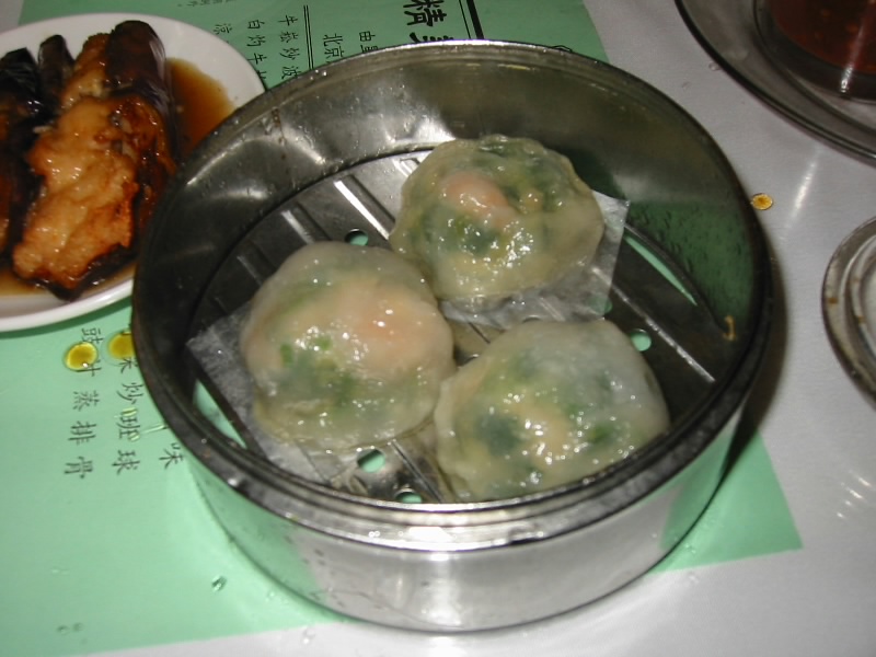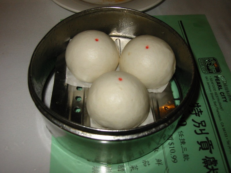 今日も時差ボケ。まともに眠れないが、まあ短期間の旅なので下手にこっちの時間になじむよりもむしろこのままの方がいいだろう。でも明け方に少し眠れたようだ。8時に起き、シャワーを浴びて出発・・・と思ったらかなりの雨。傘なしではちょっとつらいくらい、結構降っている。おなかがすいたがどうしようも無いのでしばらくロビーで待つことに。今日はまずチャイナタウンで飲茶を食べ、ゴールデンゲートブリッジを見、そしてこのあたりでショッピングの予定。でもこんな天気じゃ橋はちょっとつらいかもしれない。しばらくすると、少し小降りになってきた。とにかくケーブルカー乗り場まで行ければいいので、頑張って行きましょう。建物のひさし伝いに何とか到着。雨のせいかケーブルカーもすいている。さて、出発だ。昨日は寝過ごしてしまったので、今日はちゃんと降りなければ。10分ほどで、チャイナタウン到着。眠くならなかったぞ。まだ雨は降っているが、この辺りはお店がたくさんあるのでそれこそひさし伝いに行くことができる。昨日下見した新珠城酒樓に到着だ。中に入るとかなり賑わっており、ほとんどの席が埋まっている。人気の店なんだな。席につき、プーアル茶を頼む。すぐに出てきた。ここの飲茶はワゴンで回るのではないが、トレイに乗せたセイロを次々と持ってきて、選ばせてくれる。まずはエビの腸粉。エビがプリプリでおいしい。続いて蒸しギョウザ。これもおいしい。その次は、見たことの無いものが出てきた。よく見ると、なすのはさみ揚げのようだ。食べて見よう。うん、これはとっても好みの味だぞ。そしてエビギョウザ。ほとんどエビしか入っていないような歯ごたえがとてもプリプリしている。しかしどうして外国の飲茶のエビはこんなにプリプリなんだろう。日本で普通に食べられるのは冷凍なのか、歯ごたえが無いのが多い。うまいうまい。次はにらギョウザ。緑色が透き通っており、とてもきれいだ。食べて見ると、すごくにらの風味がしてとてもおいしい。そしてシューマイ。エビと肉が入っていて、これもおいしい。ふう、一気に食べ続けて、おなかがいっぱいになってきたぞ。ということでデザートのあんまん。ピーナッツのアンが入っており、とてもコクがある。うーん、もうちょっと食べようか、と言うことで締めにエビギョウザアゲイン。おなかが一杯でも、やはりおいしいぞ。ふー、満腹だ。これでしめて22$、実に安い飲茶だ。大満足です。