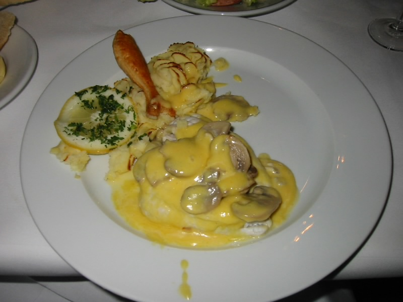 ここはやっぱりホワイトアスパラ。どうやらスモークサーモンとともに出てくるようだ。あとよく分からないがエビの料理と、魚の料理を頼む。飲み物はもちろんワイン。すっきりさわやかワインでまずは乾杯だ。ふー、疲れたからだに染み渡る。まずはサラダが出てきた。一人前なのにたっぷりだ。なかなかおいしいサラダだな。そしてホワイトアスパラ登場。日本で見る缶詰のものとは違い、立派なアスパラだ。さてと、お味は・・・うまいぞ。なんだろう、冷たいのだが何かホクホクとした感じがあるのだ。これはうまい。この季節にしか味わえないからこそ、みんな待ちかねているのだろう。スモークサーモンもうまい。どちらもワインにあうね。ご機嫌に食べおわると、つづいてエビ料理と魚料理登場。エビは想像とは違い、小エビがたっぷりだ。これがなかなかしっかりとした味のあるエビで、パンに乗せて食べてもおいしい。魚料理は白身魚のクリーム煮で、見た目ほどしつこくなくぷりぷりとした歯ごたえで、なかなかの美味。オランダ料理はわりと濃い味で印象としてはいまひとつなのだが、海が近いだけに素材はいいはずなのでこんなシンプルな料理がおいしいのかもしれない。満腹です、満足です。コーヒー&紅茶で締め、ごちそうさまでした。