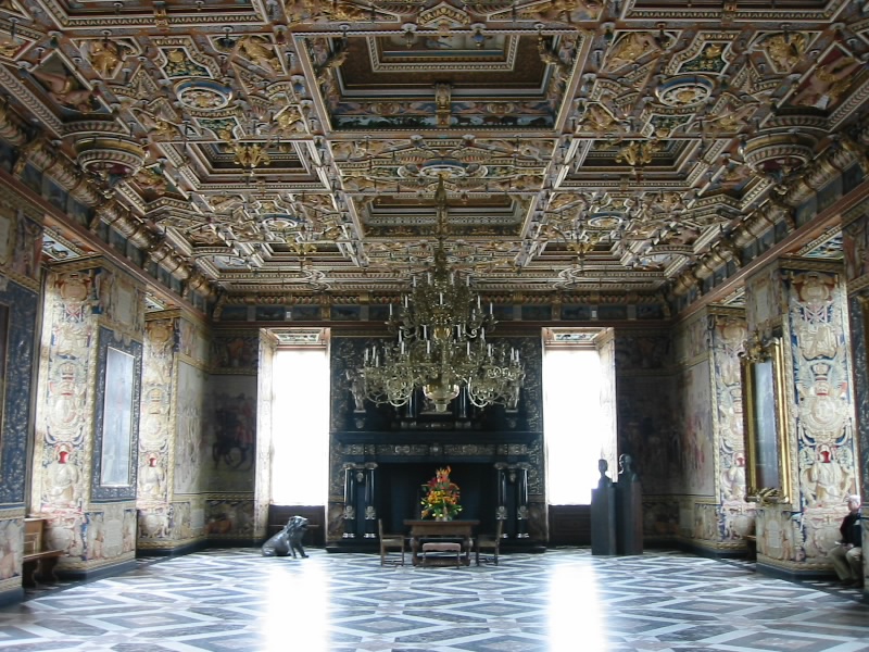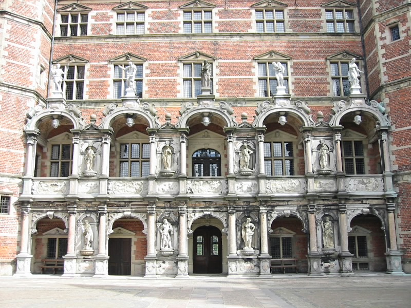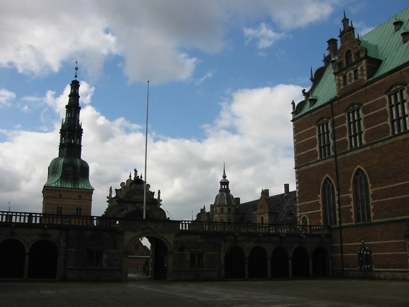 フレデリクスボー城。湖に臨む華麗な城で、遊覧船から眺める青銅の屋根や塔の姿はロマンチックそのもの。この北欧ルネサンス様式の城はフレデリクス2世の子であるクリスチャン4世が17世紀初頭に築き、それから約200年間、デンマーク王の戴冠式がこの城で執り行われていた。19世紀に火事にあい、礼拝堂だけを残し焼失。現在の建物は19世紀半ばにカール・ヤコブセンらの寄付で再建されたものだ。現在、城の内部はデンマークの国立歴史博物館になっている。王室の夏の離宮としても使われているらしい。