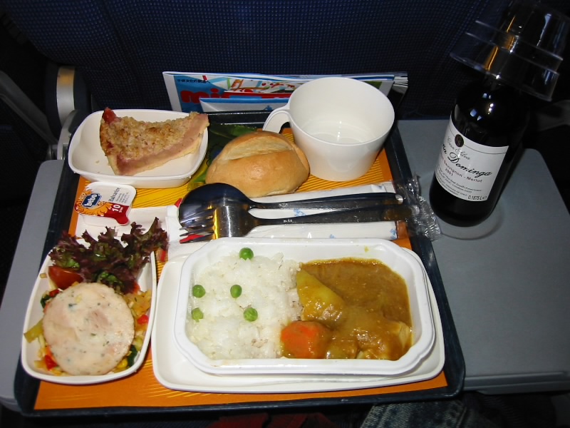 飛行機は無事にアムステルダム・スキポール空港に到着。ここは本当に大きな空港だ。乗り継ぎの時間がかなりあるのでカフェで軽く腹ごしらえをし、免税店で買い物。とはいえブランド品ではなく、チーズやサラミなどを買い込む。しばらくしてゲートへ向かう。関空行きのゲート前では、たくさんの人が出発を待っている。みんないろんなところへ行ってきたんだろうな。搭乗時間となり、飛行機へと乗り込む。そして14時25分、KL867は関西国際空港に向けて出発した。さあて、帰りの機内食はどうだろうか。行きと同じく、「和食と洋食どちらになさいますか」ときたので内容を聞いてみると・・・和食はカレー、洋食はパスタ。なんだそれは?それが日欧長距離路線の機内食なのだろうか。もはやどっちでもいいのだが無難なカレーにする。そしてお味は・・・全く辛くない。カレーじゃないよーこれは。どうにかしてくれーKLM!もう乗らんぞー!
