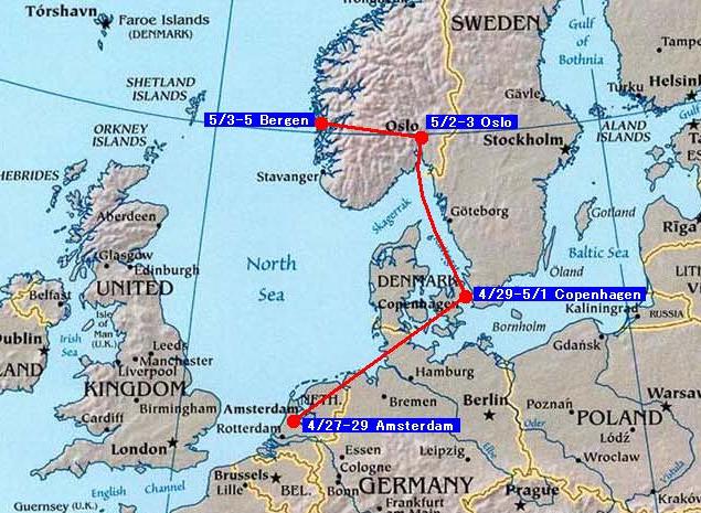チボリ公園をのんびり散歩。晴天の中、豪華客船スイートルームでオスロを目指す。 |