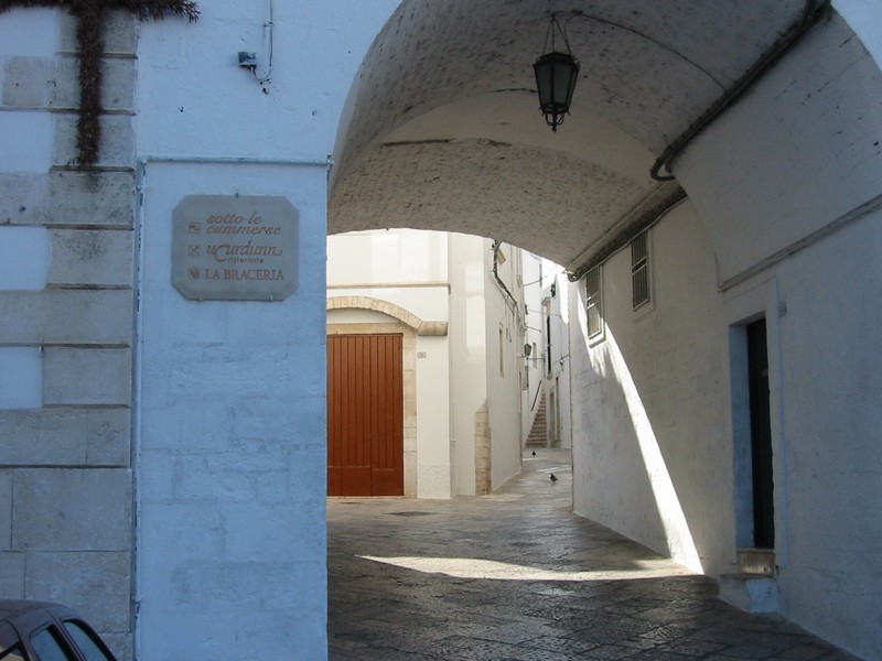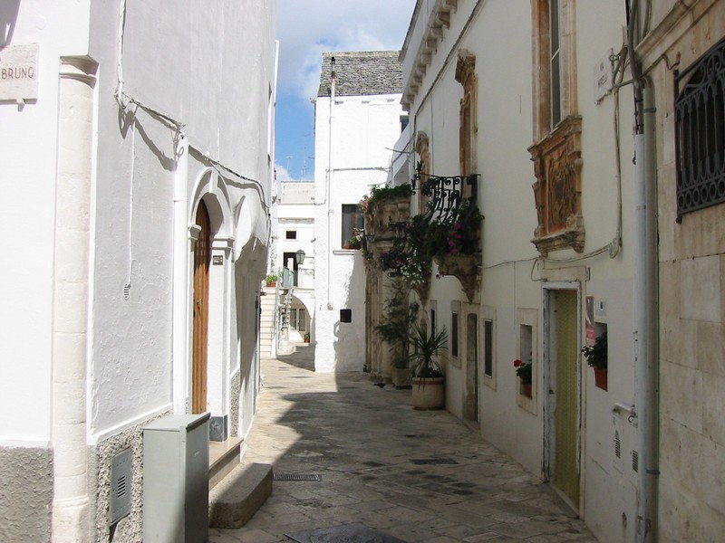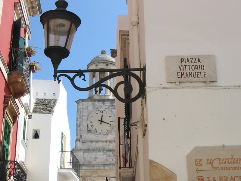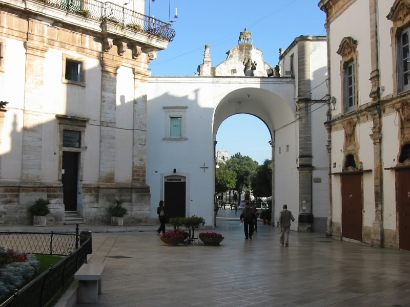 まっすぐの道を進み、途中からの上り坂を登りきったところにあるのがマルティーナフランカ、「Citta del festival(祭りの街)」だ。なにか有名な祭りでもあるのだろうか。街に入ったはいいが、駐車場が良く分からない。しばらくうろうろしているうちに、旧市街の外側にある道沿いに駐車スペースを発見。お金の払い方が良く分からなかったが、近くのガソリンスタンドのおっちゃんに聞くとどうやら時間を書いてフロントガラスからみえるようにしておけばいいらしく、今の時間を書いてくれた。いまひとつシステムが分からないが、まあいいだろう。旧市街に入ろう。