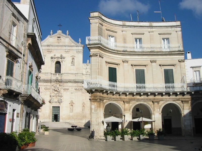ここマルティーナフランカは、オストゥーニやロコロトンドのような白い街とはがらりと変わり、バロック調の建物が並ぶ街。プーリアは街ごとにがらりと表情を変えるので、実におもしろい。さあて、うろつきますか。と、なぜか街の真ん中にある広場で、思わず大きなくしゃみをしてしまった。すると通りすがりの兄ちゃんが、ぼそっと「Salud(サルー)」・・・要するに「お大事に」とか「健康を祝して」みたいな意味の言葉で、イタリアやスペインではくしゃみをした人がいると近くの人がそう言うのが習慣らしい。そうは言ってもわれわれ日本人観光客に対して、しかもサングラスとスーツできめきめのにーちゃんがボソッとそうつぶやいたことが妙におかしかった。いや、思わず言ってしまうほど大きなくしゃみだったのだろうか・・・