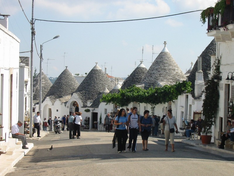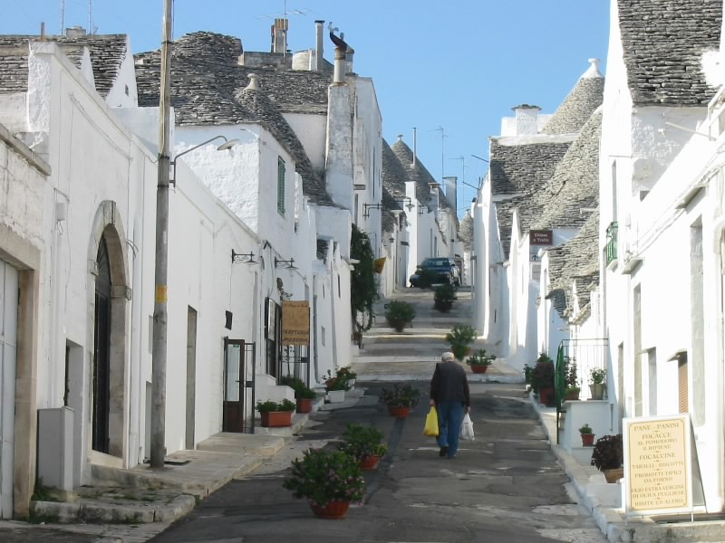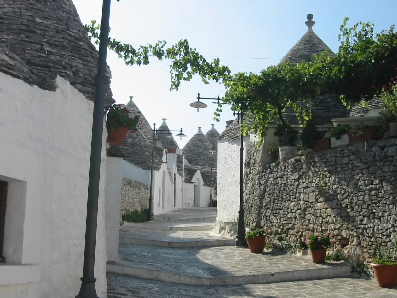 チェックアウトが11時と早いので、早々に荷物をまとめる。いろいろあったがトゥルッリ、なかなか快適でした(234E)。また機会があれば、是非泊まりたいものです。さて、荷物を車にいれ、身軽になってしばしアルベロベッロを散歩。ここの滞在中、昼間は他の町に行っていたし、夕方は買い物が中心だったので、メインストリート以外はあまり歩いてないのだ。