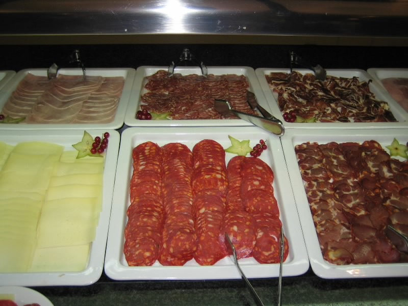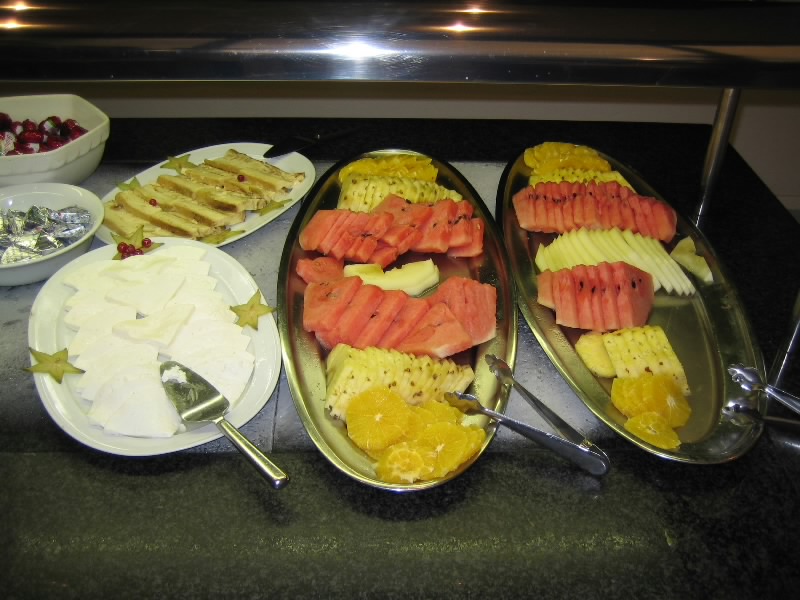 時差ぼけのせいで何度か目が覚める。7時前、そろそろ起きましょうか。おなかがすいたよ〜。外を見ると、予報とおり雨がぱらついている感じ。今日はサッカーを見る日なので、なんとかあがってほしいものだが。シャワーを浴びてさっぱりし、8時ごろに朝ごはんへ。外はすごい雨だ。レストランに行くと、人が少なくがらんとした感じ。朝ごはんは7時からなのだが、まだあまり来ていないようだ。まずはオレンジジュース。スペインらしく、搾りたてのオレンジジュースが胃にしみわたる。すっきりしたぞ。さて、バイキングなので取りにいきますか。ハムやチーズが充実しているし、スペイン風オムレツなどもありなかなか豪華な朝ごはん。もう少し野菜があればもっといいんだけどね。ゆったり過ごし、コーヒーをたっぷりと楽しみ、満足です。