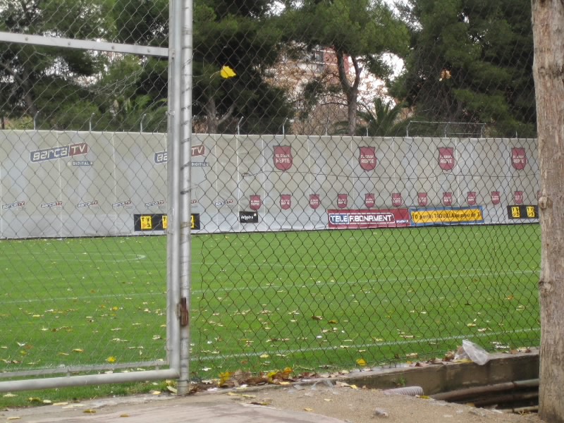 しばらくして、場内がざわめき始めた。選手が出てきたようだ。でも、水色のユニフォーム。これはマラガだね。向かって左側がホームチームの練習場所だと思っていたのだが、どうやら逆の様子。マラガの選手は一人もしらないなあ。うーん、反対側に行こうかなあ、と思っているうちに、大歓声が上がりバルサの選手登場。これは近くに行かなければ。人を掻き分けてできるだけ近くまで行ってみよう。うーん、よく見えるぞ。あれはどうみてもロナウジーニョ。デコとウォーミングアップだ。おお、あれはエトオ。タクシー出勤のエトオだ。プジョルもいるし、シャビもいるし、各国の代表クラスが目の前にいるのだ。ラーションが怪我でいないのが残念だが・・・そろそろ練習が終わりそうだ。席に戻りますか。
