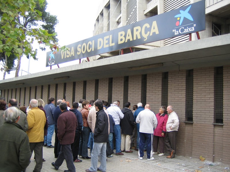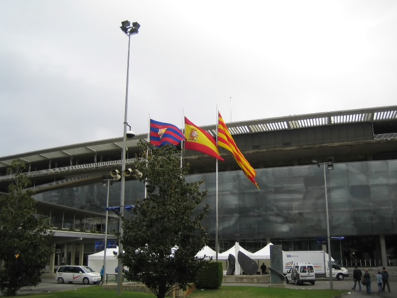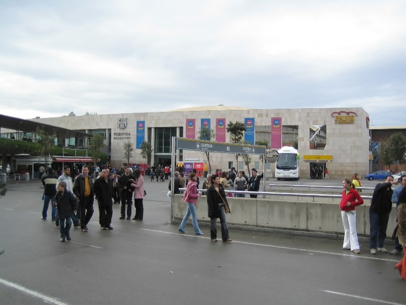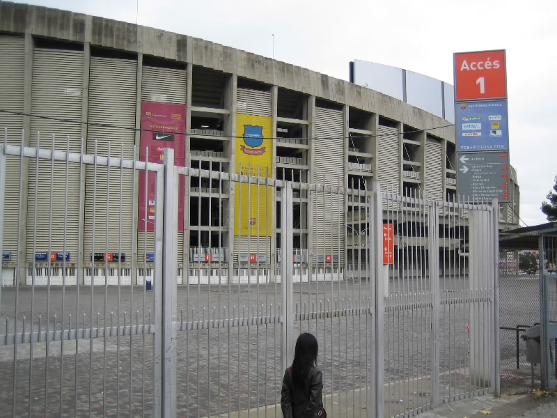 いったん部屋に戻り、準備をして出発だ。なんとか雨もあがったようだ。このまま晴れてくれるといいが・・・ホテルの目の前に地下鉄の入り口があるのでちょうどいい。改札前の切符売り場で回数券(タルヘタ、@6E)を買う。これで10回地下鉄に乗れるのだ。まず向かうは、FCバルサのホームグラウンド、カンプノウ。地下鉄3号線のMaria Cristinaまで行き、そこから徒歩で10分程度。11時から今日の試合、バルサ対マラガ戦の当日券が発売されるのだが、30分ほど早くついたようで、まだ人もまばらだ。巨大なスタジアムの回りをうろうろとする。