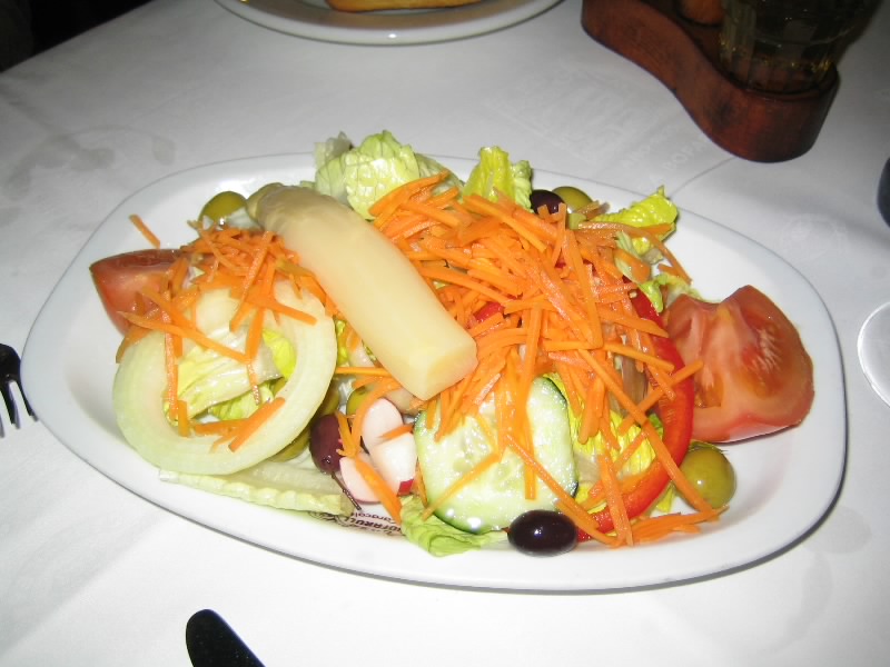 奥の部屋に行き、さらに2階へ。まだ開店間もないのだが、そこそこお客さんがいるぞ。荷物があることもあり、ゆったりとした4人テーブルへ通してくれた。ひょっとしてこれもバルサマフラー効果?さてと、今日頼むものはもう決まっている。さっぱりしたサラダ、シーフードのパエージャ、そして入り口で回っていたチキン。特にあのチキンは、今まで食べたいと思っていながら食べる機会がなかったもので、ちょうどハーフサイズがあったので、パエージャも食べたいがたとえ量が多くても今回は食べようと思っていたのだ。まずはビールで乾杯。