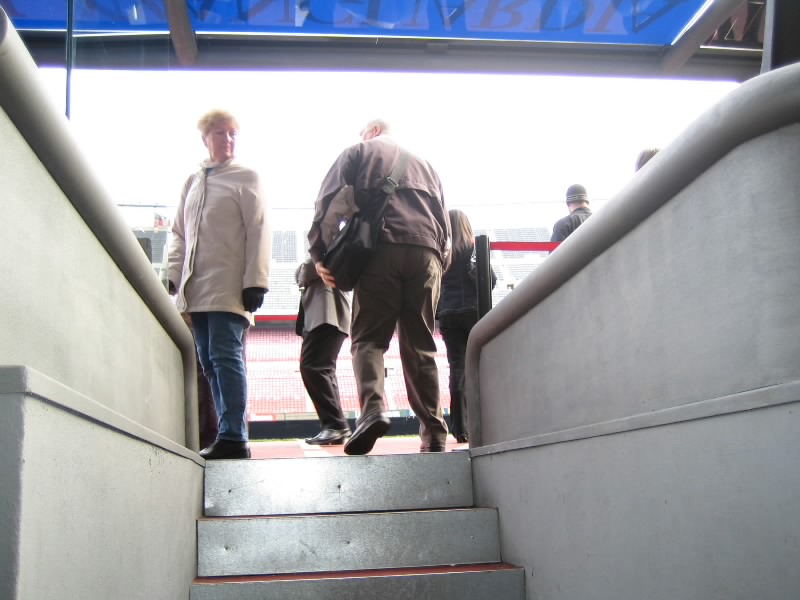 まずはロッカールームへ。何もおかれていないので、おそらくアウェイ用だろう。でも結構広々とした感じで、たくさんのロッカーにシャワー、そして結構深いバスがある。試合の後はここでみんな汗を流すのだろう。先月のレアルや今年のCLのミランなどもここにいたのかな。それにしても、ずいぶんときれいにしているものだ。ピッチに向かう下り階段の途中にあるのはメディア室。試合終了後に監督や会長が出演する場所らしい。その向かいには教会。さすがキリスト教の国、スタジアムの中にもお祈りできる場所がある。それほど広くは無いが、ここでたくさんの選手が試合前に祈りをささげるのだろう。