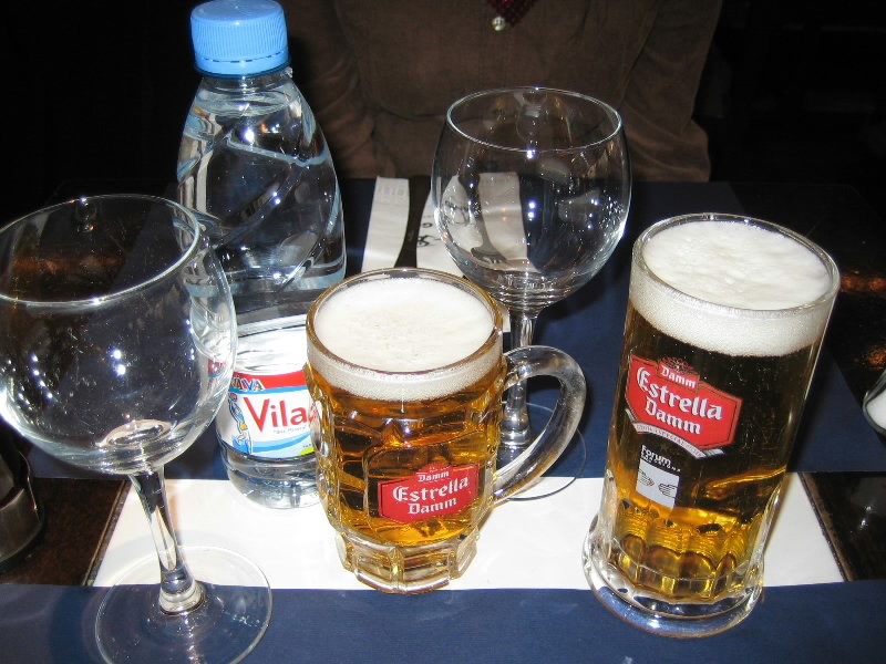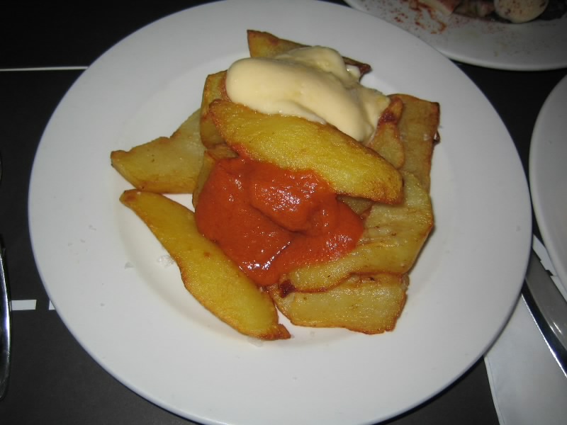 少しうとうとしたようだ。外はもう暗い。そろそろ晩ごはんにしましょうか。今日もタパスが食べたいな。ガイドブックを見ると、ジャウマ・プリメ駅のもう少し向こうにいくつかお店があるらしい。どんな感じかは分からないが、行って見ましょうか。カテドラル前の広場を抜け、ジャウマ・プリメ駅へ。ここから斜めに入るArgenteria通りが目的の通りなのだが、ここも人が多いぞ。ぶらぶら歩いていると、確かに良さそうなお店があるようだ。さあてどこにしましょうか。いくつか見てまわり、タパスのメニューがたくさんあるTaller de Tapasというお店に入りましょう。かなり賑わっていたが、ちょうど2人席があいていたのですぐ入れたぞ。さて、何にしましょうか。まずは今日もスペインワインの赤。タパスはいろいろあるので迷ったが、テーブルが小さいので4品くらいかな。まずはワインで乾杯。リオハワインで、しっかりまろやかな感じ。うまいね。続いてトマトのパン。これが・・・うまい。香ばしいし、トマトの甘みがうまい。いいねえ。1999年に食べたときのイマイチな印象は、すっかり消えたな。これからは毎回頼みたいもののひとつになった。そして残り3品が一気に来た。タコのガリシア風は、柔らかいタコとポテト、そしてパプリカの風味がとてもいい。ポテトがかぶってしまったが、ポテトフライはジャガイモの味が濃くておいしい。カタルーニャ風のソースとも合うしね。青唐のようなもののフライは、まさに青唐そのものだ。とくに辛すぎることもなく、いい感じだ。どれもおいしいね。ワインとともにゆったりと楽しむ。本当はもっと食べたいところなのだが、やっぱりまだ時差ぼけなのか眠くなってきて、残念ながらもうここまで(26E)。行きますか。