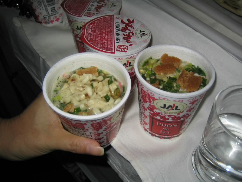 このあとはひたすらゆったりタイム。ゲームしたり寝たり音楽聴いたりはできるのだが、機内が夜モードのためあまり本を読んだり日記書いたりはしづらい状態。ドリンクや軽食は自由に取りにいけるのでいいのだが、やっぱり寝ている人が多いとちょっと動きづらい。ということで軽食コーナーでJALのうどんでスカイをいただく。エールフランスだけどJAL共同運航便なのでこれもあるんだな。席に戻り、眠いのだが寝ているような寝ていないような、妙な感じが続く。