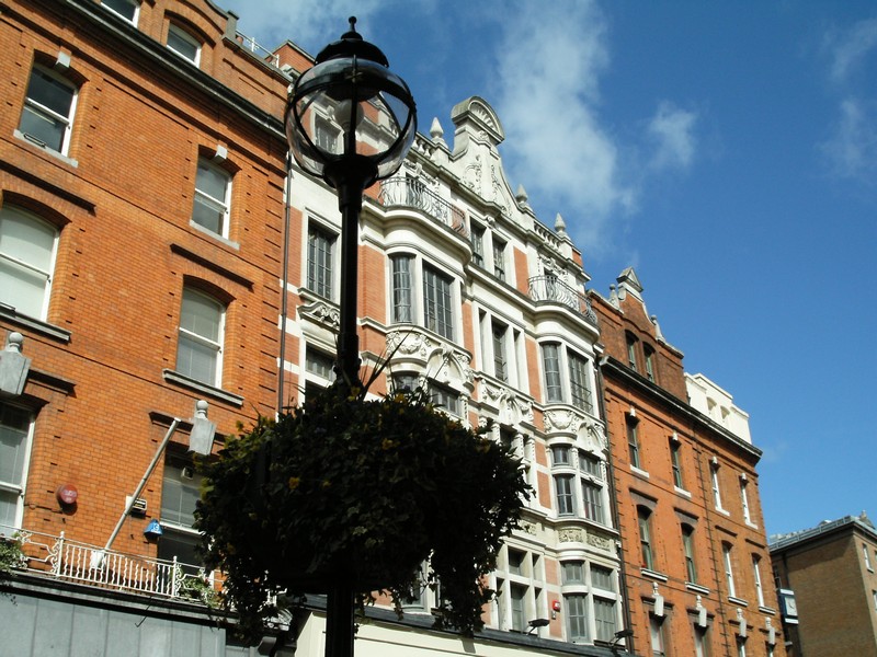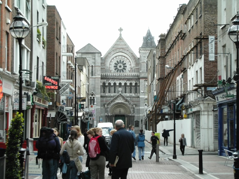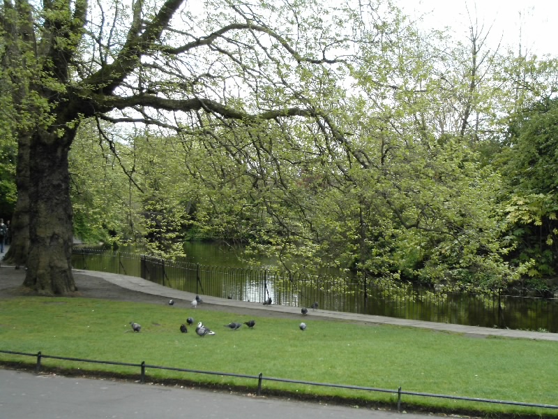 しばらくして、少し寒くなってきた。天気はいいのだが・・・というわけでいったんホテルへと戻り、少し厚着をする。今度はトリニティカレッジを越え、グラフトン通りへ。途中、道路の標識に気付いたのだが、英語ともうひとつ違う言葉が書いてある。どうやらこれはゲール語という言葉で、アイルランド固有の言語らしい。よって標識や看板など、2つの言葉を並べて書いているものが多いのだ。しばらくして、グラフトン通りに到着。ここは歩行者天国になっており、たくさんのお店が並んでいる。服やCDなどを見ながら、ぶらぶらと歩く。買うにはもう一息と言う感じで、結局何も買わなかったが・・・グラフトン通りを抜けると、セントスティーブンス・グリーンという公園がある。