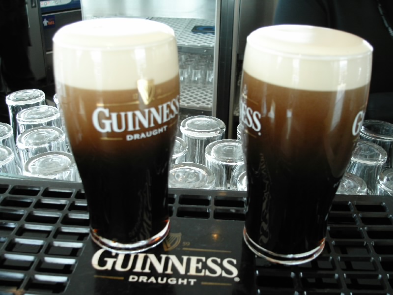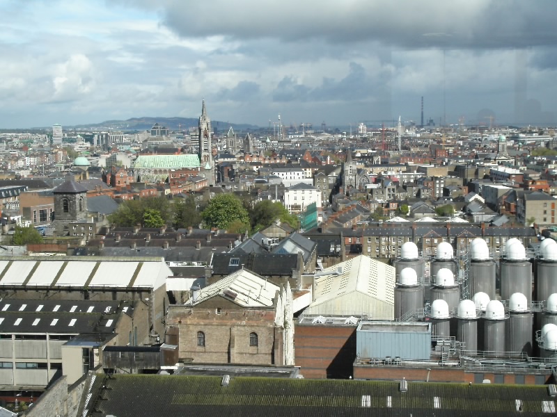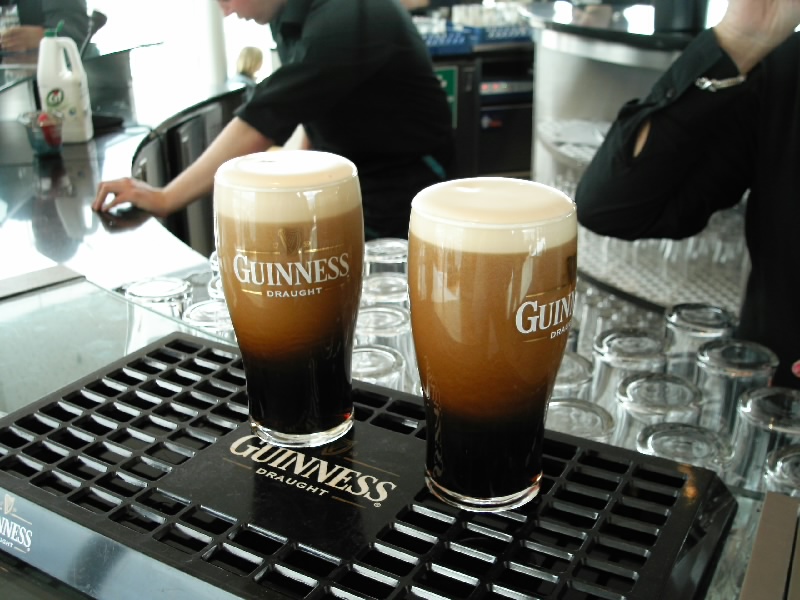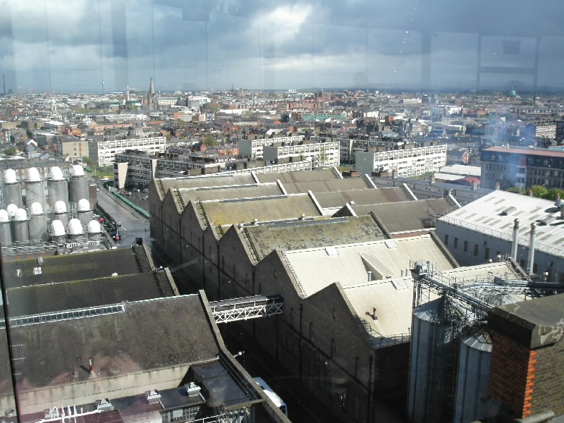 3階、4階と進んでいき、5階にはバーがあった。ここでもギネスをのめるようだが、せっかくなので7階の最上階へ。エレベーターで上がると、そこにはダブリン市内を360度見渡す景色が広がっていた。さっそくカウンターでギネスをもらう。グラスに注がれたギネスは、最初はまるでコーヒー牛乳のようにみえる。それが下からだんだんと黒い部分が重なっていき、上はクリーミーな白い泡でおおわれていく。ある程度白と黒がはっきりしたところで、もう少し継ぎ足し、グラスいっぱいになる。そしてもう少し待つと、白と黒がはっきりと別れたギネスビールのできあがりだ。最初に注いでから、ここまで数分。ギネスはゆったりと飲むものなのだ。