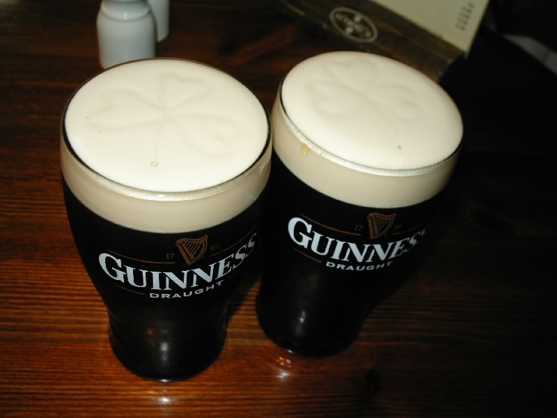 さあ、チェックインだ。行きはセルフチェックインだったが、帰りは普通にチェックイン。ここからはロンドン行きが主なので、BMIのカウンターもそれほどは混まないのだろう。ロンドンまでのチェックインを済ませ、出発ロビーへ。途中、出国審査らしきものは特になかった。出発ロビーにはいくつか免税店が並んでいる。ここで最後のお買い物だな。残りのユーロと相談しながら、紅茶やスモークサーモンをゲット(30.80E)。さらにお酒売り場では、味見したアイリッシュコーヒーのリキュールをはじめ、アイリッシュミストやベイリーズなどをゲット(47.80E)。いろいろ買ったな。両手いっぱいの荷物を持ち、飛行機へと乗り込む。ここからロンドンまでは1時間ほど。おいしいサンドイッチと紅茶を飲みながら、ロンドン・ヒースローへと戻ってきたぞ。関空行きはまだまだ先なので、チェックインができるようになるまではしばらくカフェで休憩。ファンタを飲みながら、日記を書いたりしながらのんびりと過ごす。1時間以上たち、そろそろ行きましょうか。どうやらチェックインも出来るようなので、チケットを受け取り出国手続き。まだまだ出発までは時間があるので、免税店を見た後はロビー内のパブでゆったりギネスを楽しむ。これが本当に最後のギネスだね。ただ、アイルランドのパブとの決定的な違いはタバコ。アイルランドは全面禁煙だが、イギリスは普通に分煙なのでやっぱりタバコのにおいは漂ってくる。まあ仕方ないか。ギネスの泡を良く見ると、アイルランドのシンボル、クローバーの模様が。おいしいジャガイモで作ったフライドポテトとともに、ゆったり味わう。いいね、この時間。これが時間がドゴールでは楽しめないんだよなあ・・・