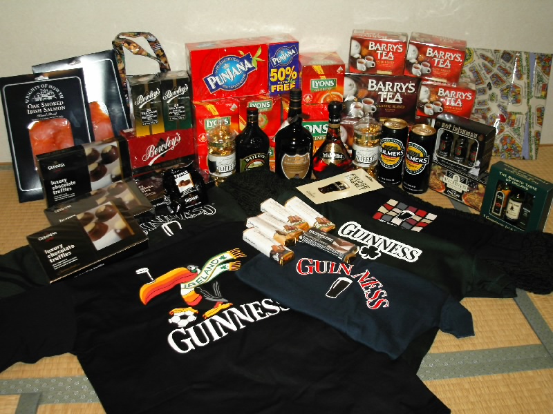 今回の収穫。紅茶以外はあまり買う予定が無かったが、お酒やチョコなどいろいろ買いたくなるものが多いアイルランドツアーでした。